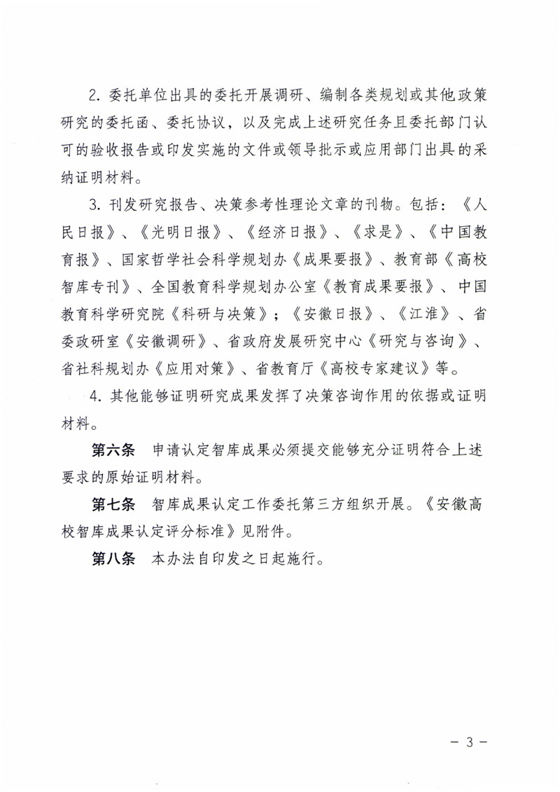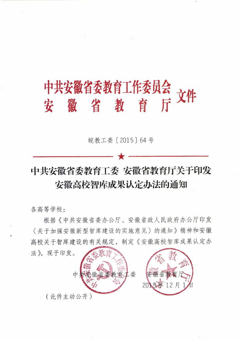 中共安徽省委教育工委 安徽省教育厅关于印发安徽高校智库成果认定办法的通知