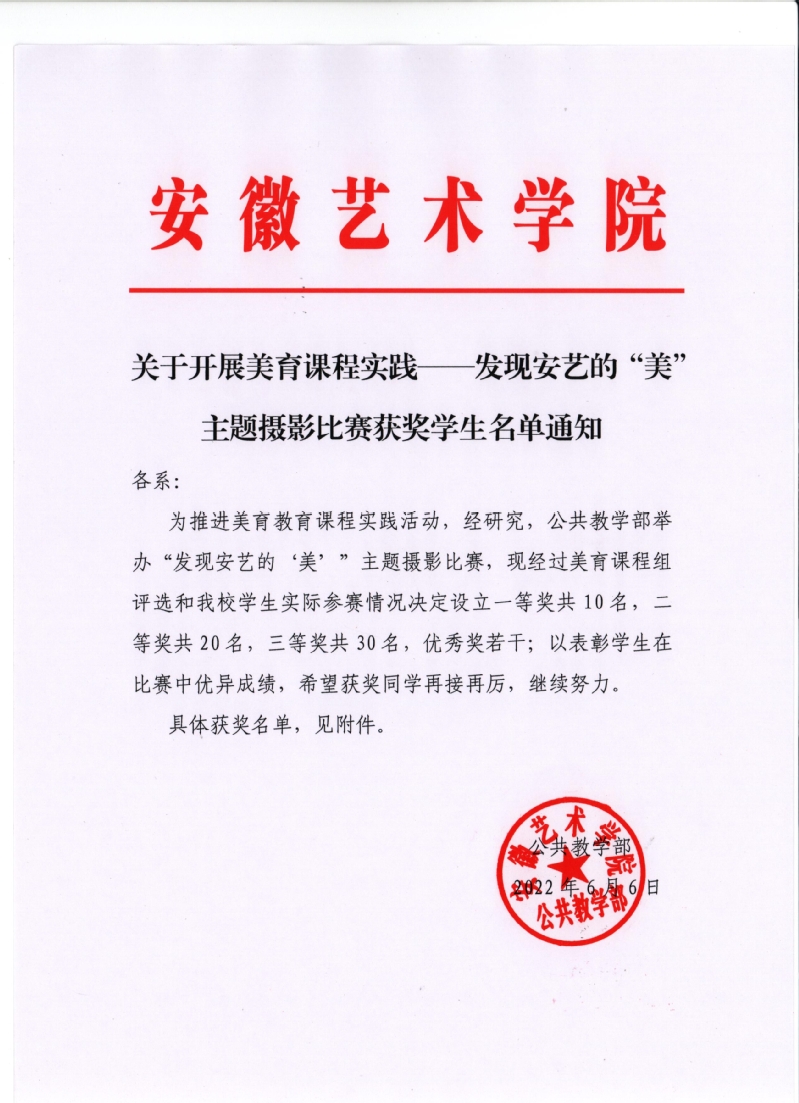 关于开展美育课程实践——发现安艺的“美”主题摄影比赛获奖学生名单通知