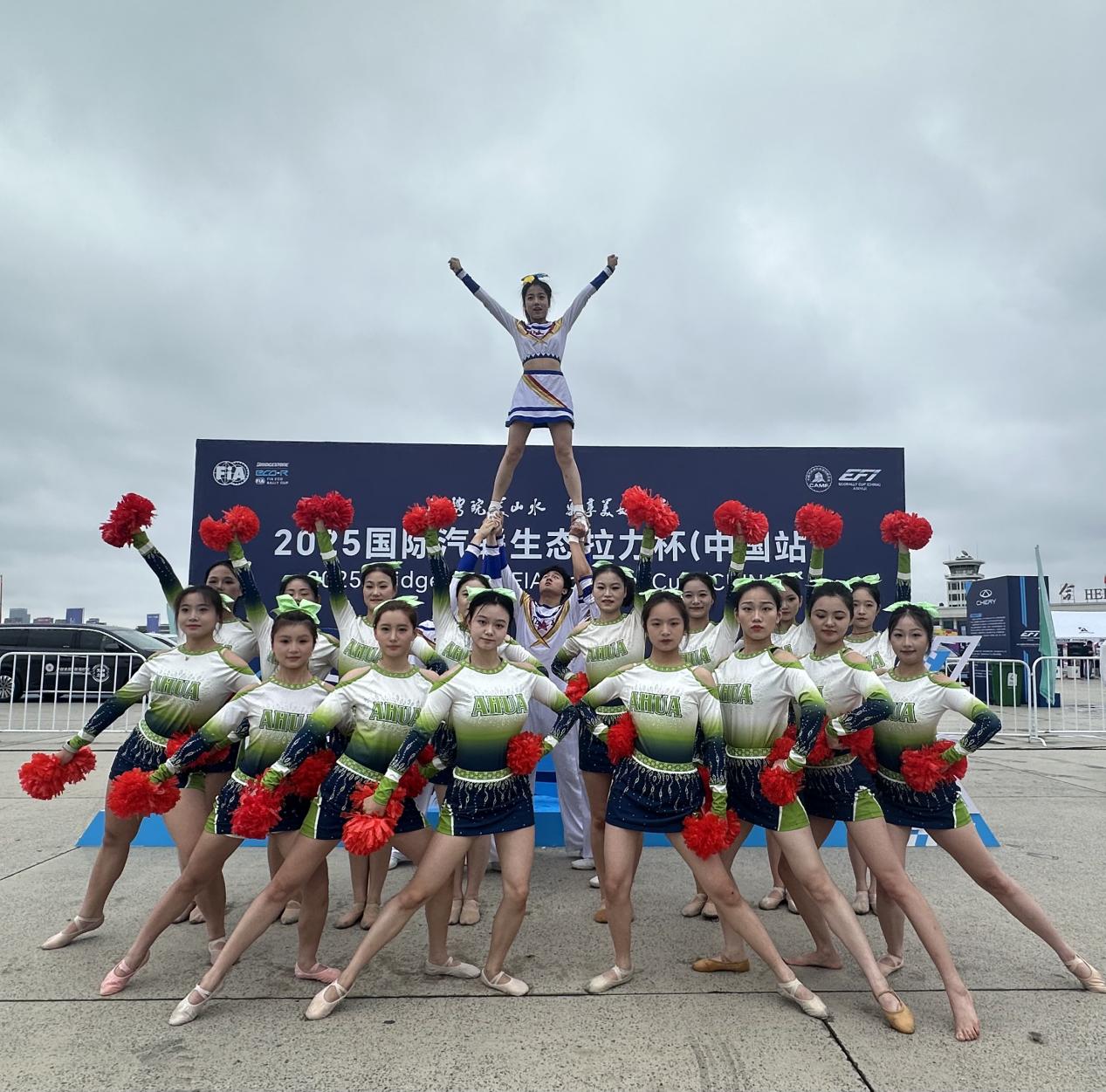 9月24日,2025国际汽联生态拉力杯(中国站)在合肥骆岗公园正式开赛,这是该国际赛事第二次到访中国、落地安徽。我校啦啦队受邀登台献艺,以活力四射的表演为这场国际赛事拉开序幕,将现场气氛推向高潮,赢得中外嘉宾与观众的热烈赞誉。作为亚洲水平领先的国际性汽车赛事,此次受邀,是赛事组委会对我校啦啦队专业水准与精神风貌的高度认可。