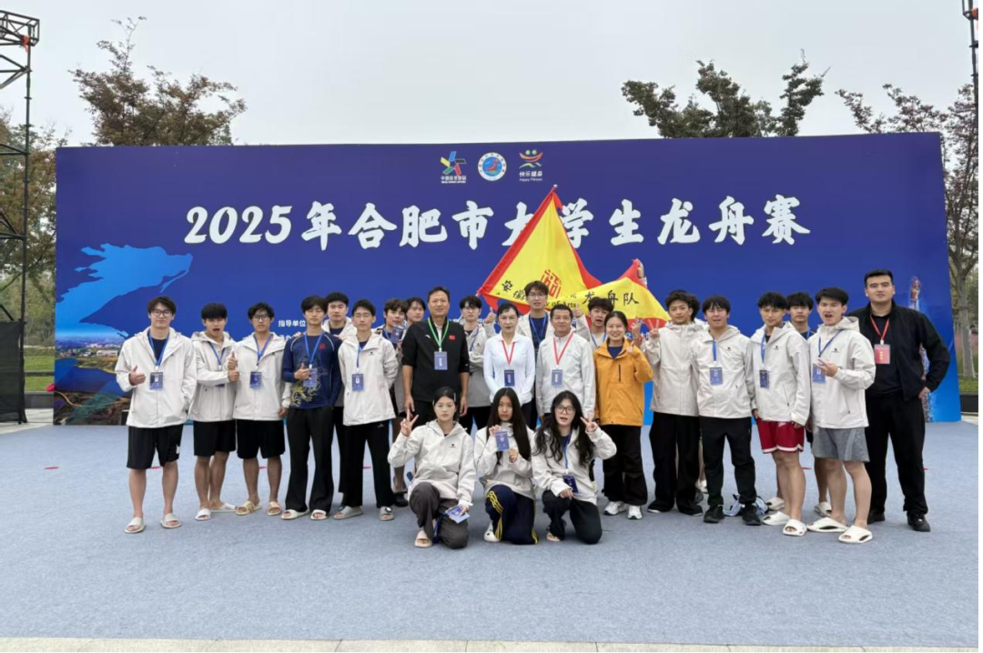 10月12日,2025合肥市大学生龙舟赛在新站高新区少荃湖水域开赛。我校龙舟队与中国科技大学、合肥工业大学等全市17支高校队伍同台竞技,最终荣获三等奖,并实现了赛事成绩新突破,充分展现了我校学子顽强拼搏的体育素养与高效协作的团队能力。