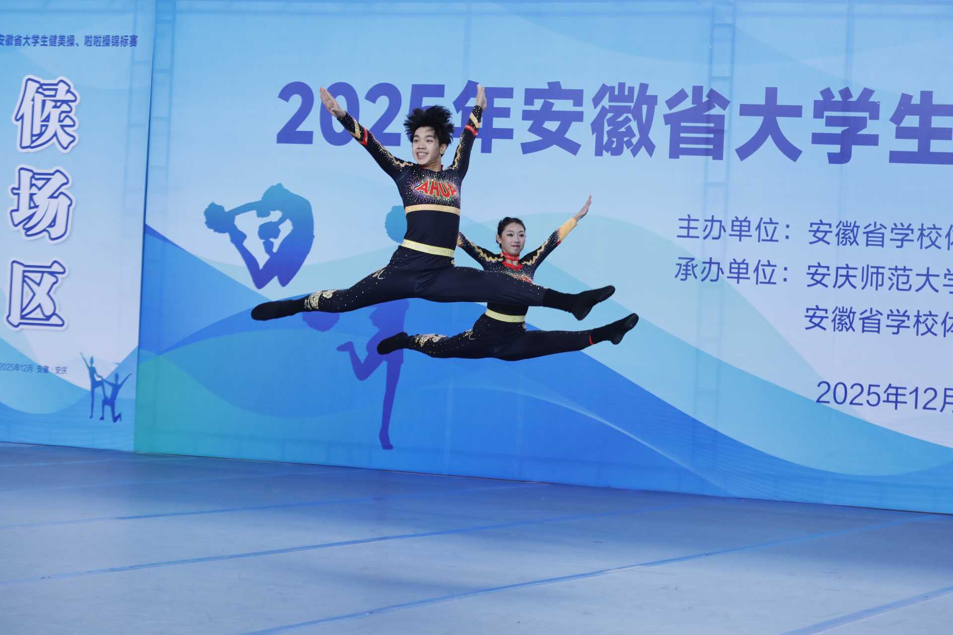 12月4日至7日,由安徽省体育协会主办的2025年安徽省大学生健美操啦啦操锦标赛在安徽安庆师范大学盛大举行。我校啦啦操代表队凭借出色发挥,在众多参赛队伍中脱颖而出。在爵士项目的角逐中,队员们以极具感染力的舞蹈动作、精准的节奏把控和富有张力的舞台表现,荣获丙丁专业组双人爵士项目第一。而在街舞项目中,队员们也展现出了高超的街舞技巧和团队协作能力,斩获丁组街舞项目第二名。
