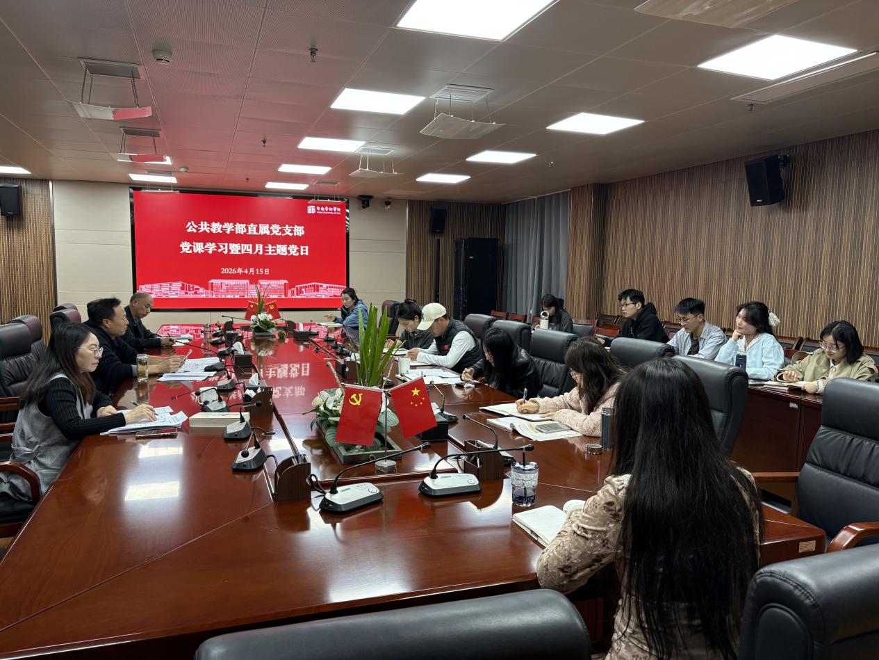 4月15日,公共教学部直属党支部开展党课学习暨四月主题党日活动。党课由党支部书记张井水主讲,全体党员参加。