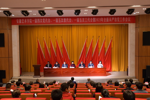 3月28日,中国共产党安徽艺术学院第一届代表大会第四次会议暨安徽艺术学院第一届教职工代表大会、工会会员代表大会第五次会议暨2025年全面从严治党工作会议在综合楼报告厅召开。校党委领导班子成员韩军、柳友荣、陈文兵、程宗林、曹晓富、王琍琍,校工会主席李胜出席会议并在主席台就座。党委副书记、校长柳友荣主持大会开幕式,党委书记韩军主持大会闭幕式。