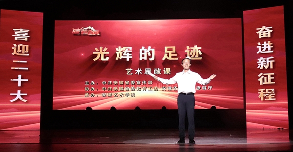 “同学们,大家好!欢迎来到‘皖’若春风大思政课的现场。我是安徽艺术学院教师尹广富……”9月28日下午,伴随着上课铃声响起,“皖”若春风“光辉的足迹”艺术思政课在安徽艺术学院剧场开讲。