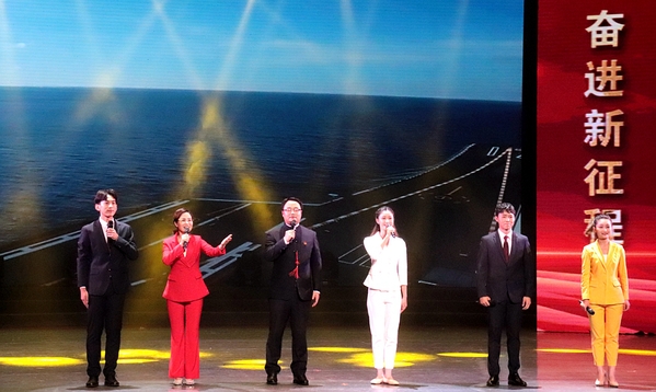 从“情满振兴路”“热血创新城”到“千秋生态业”,三个篇章的串讲和演绎后,“光辉的足迹”艺术思政课在四重唱《领航》的嘹亮歌声中收尾。