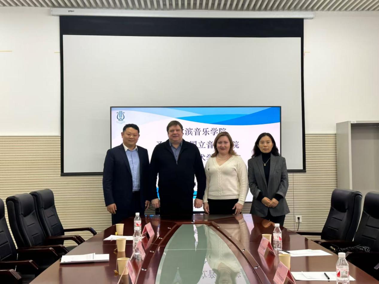 近日,学校与哈尔滨音乐学院、圣彼得堡国立音乐学院合作交流座谈会在哈尔滨音乐学院举行。圣彼得堡国立音乐学院院长阿列克谢·瓦西里耶夫,外事处处长列金娜·格拉祖诺娃,哈尔滨音乐学院国际合作与交流处处长王辉,我校继续教育(国际教育)学院院长陈明出席会议。