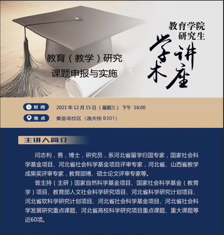 学术讲座预告:12月15日16:00,闫志利研究员:教育(教学)研究——课题申报与实施