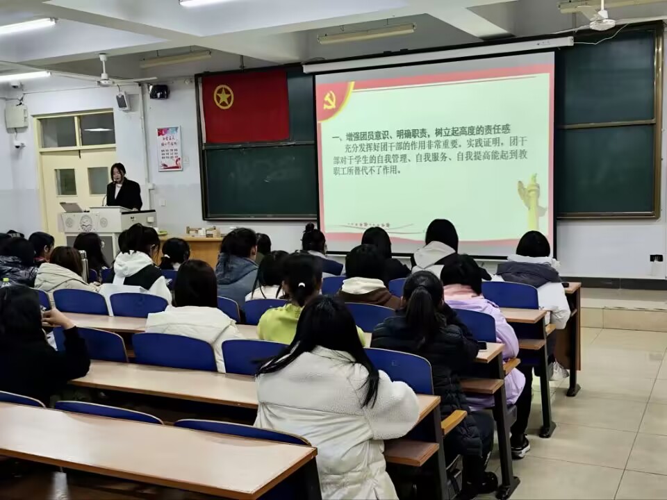 本期培训由优秀团员代表雷茹易担任主讲人,本次培训首先提出团干部的含义,经此同学们初步了解到团干部的意义,接着主讲人围绕团干部的特点进行阐述团干部是团组织的骨干及核心,并从四方面讲述团干部的作用,树立团干部的的思想意识,锻炼提高工作能力并养成良好作风,最后从四点表述了对各位团干部的美好期望,带领大家真正把担当理念落实到行动上,落实到实践中,深化团干部对团组织思想意识的体悟。
