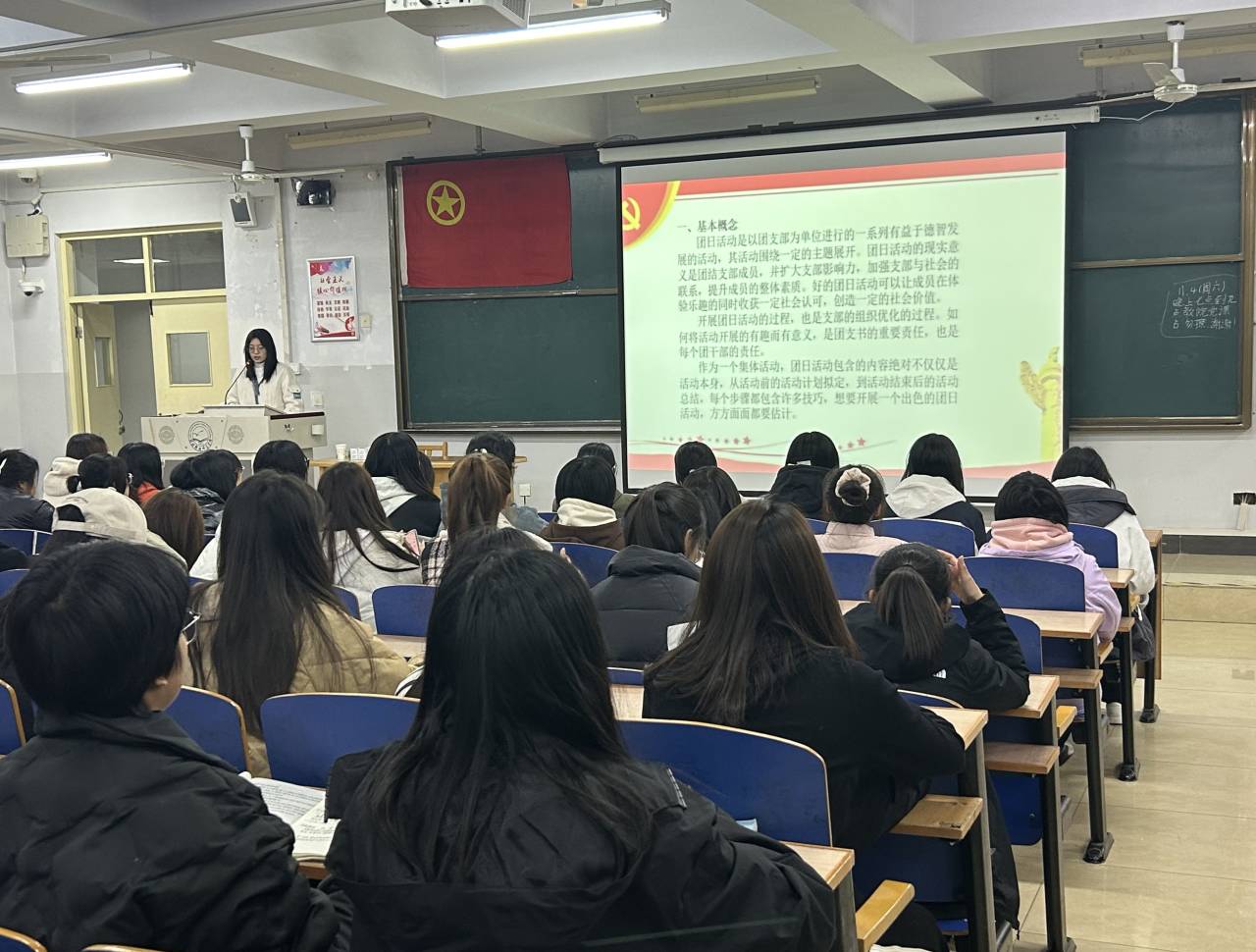 本次培训围绕团日活动的组织与开展,首先介绍了团日活动的基本概念,接着围绕教育、科技、公益、文体等六类活动内容依次进行详细解读,使学员深入了解到团日活动的丰富趣味性。随后,主讲人就普通和精品团日活动的区别与协同性、开展团日活动的效果及影响展开论述,指出团日活动旨在增强团支部的凝聚力,传达团委精神,扩大团支部影响力。通过此次培训,学员全面了解团日活动开展的流程,深切感受到团日活动蕴含的深刻内涵及重要性,激发了学员的创新意识和创造活力,充分调动了学员参加团日活动的积极性。