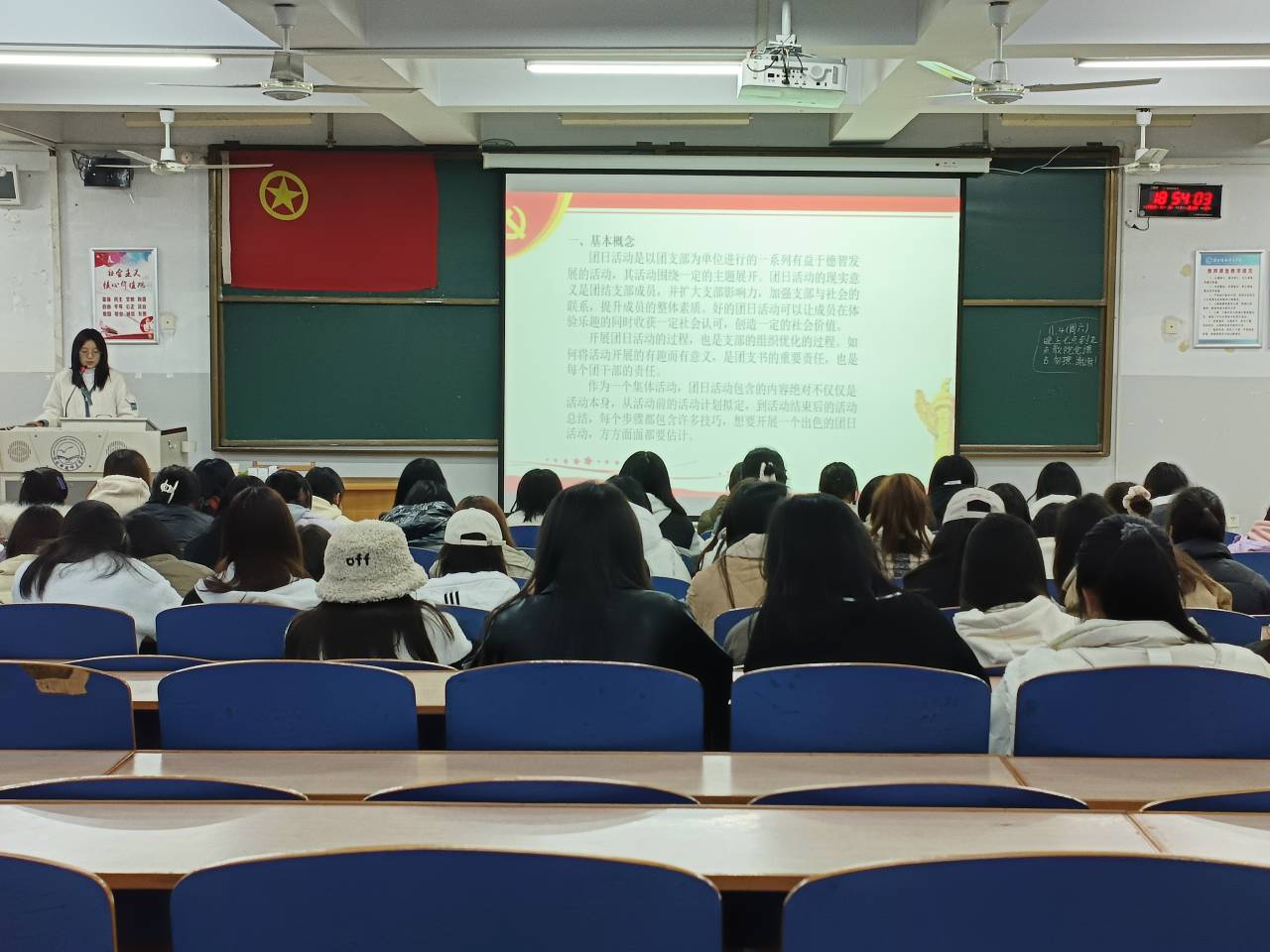 为加强团员的团的基本知识教育,提高团员思想理论水平和政治素质,促进我院团组织建设,2023年11月6日19:00,教育学院于综合楼412教室举办第九期星火干校第六期培训。本次培训共有116名学员参与,学前教育2103班李雨佳同学担任主讲人。