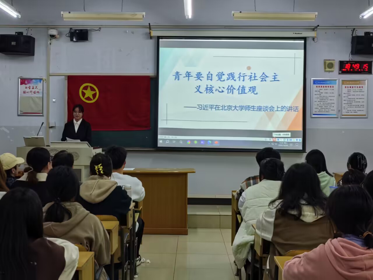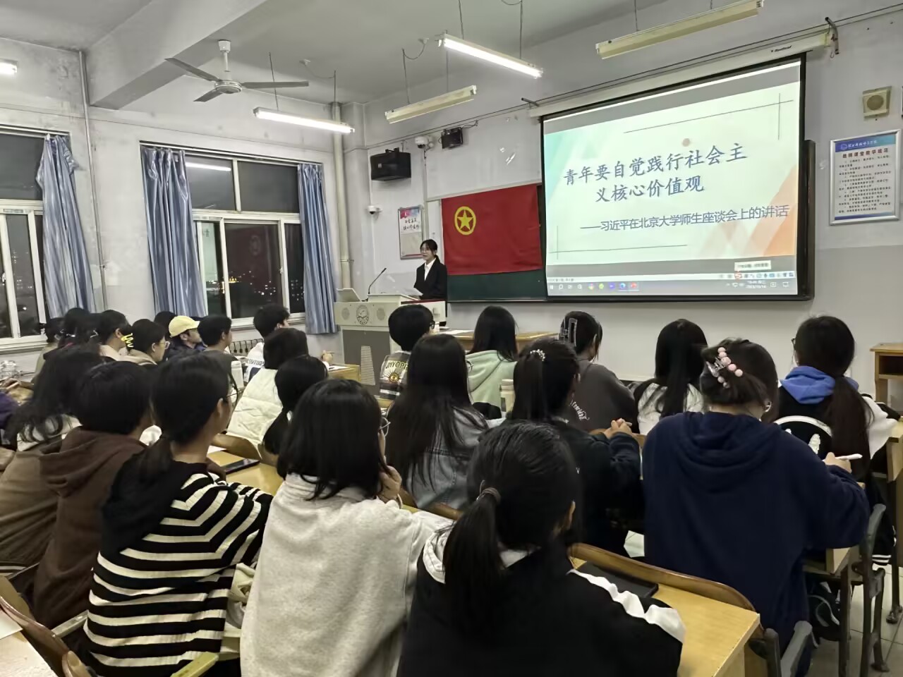交流会上,团员青年们在主持人的带领下,集中研读了习近平总书记在北京大学师生座谈会上的讲话《青年要自觉践行社会主义核心价值观》。研读过程中,团员青年们纷纷有感而发,团属干部代表魏佳苗同学表示:作为一名团学干部,必须拥有坚定的政治站位和过硬的政治理论素养,将自己的理想同祖国、民族的命运紧密联系在一起;必须沉下心来求真学问、练真本领,在不断学习、实践中充分挖掘自身潜力;必须坚持实事求是,知行合一,努力成为一名又红又专、德才兼备、全面发展的中国特色社会主义合格建设者和可靠接班人。青年代表何茹意同学表示:我们现在处于新时代的重要发展时期,面临许多机遇的同时也对我们青年提出了新的要求。青年兴则国家兴,作为一名师范生,我们要明确历史赋予的使命,生逢其时,厚积薄发。作为学生干部,我将发挥学生干部的先锋模范带头作用,做中国特色社会主义的传播者与践行者,为民族复兴添砖加瓦。