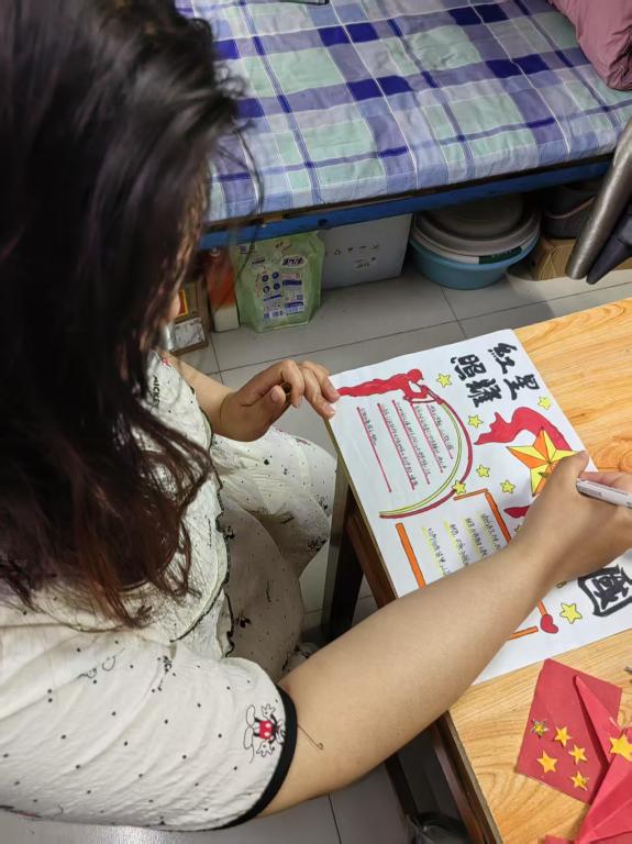活动中,各宿舍定期组织学习红色文化,团员们深入研读红色经典,了解革命历史,汲取精神力量。在此基础上,各宿舍成员发挥创意,设计了以“争做时代好青年从娃娃抓起”“红星照耀中国”“童心向党,红心闪耀”等为主题的红色手抄报。这些手抄报内容丰富,形式多样,画卷精美,色彩鲜艳,充分展现了团员们对红色文化的深刻理解和独特见解。