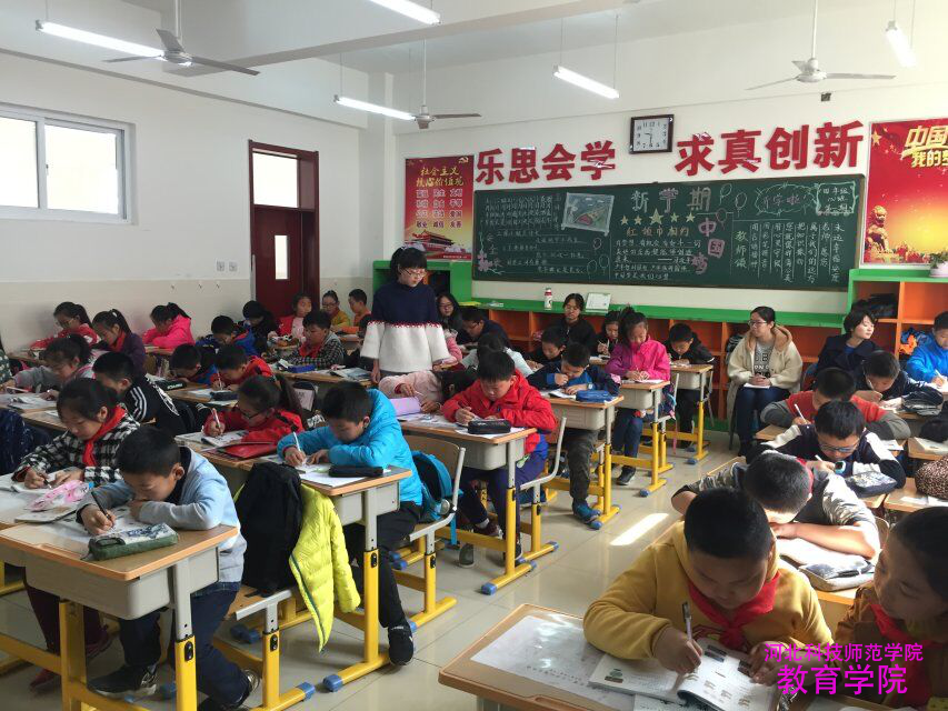 2018年3月12日(本学期开学第二周),教育学院小学教育专业2015级学生共64名,分为8组,分别开始在开发区第一小学、第二小学、第四小学,滨河路小学,和安里小学,海阳路小学,文化里小学,明珠学校顶岗教育实习。按照一对一的原则,每位实习生都有一位小学的指导教师,学生们以教师的角色体验17周的小学生活。