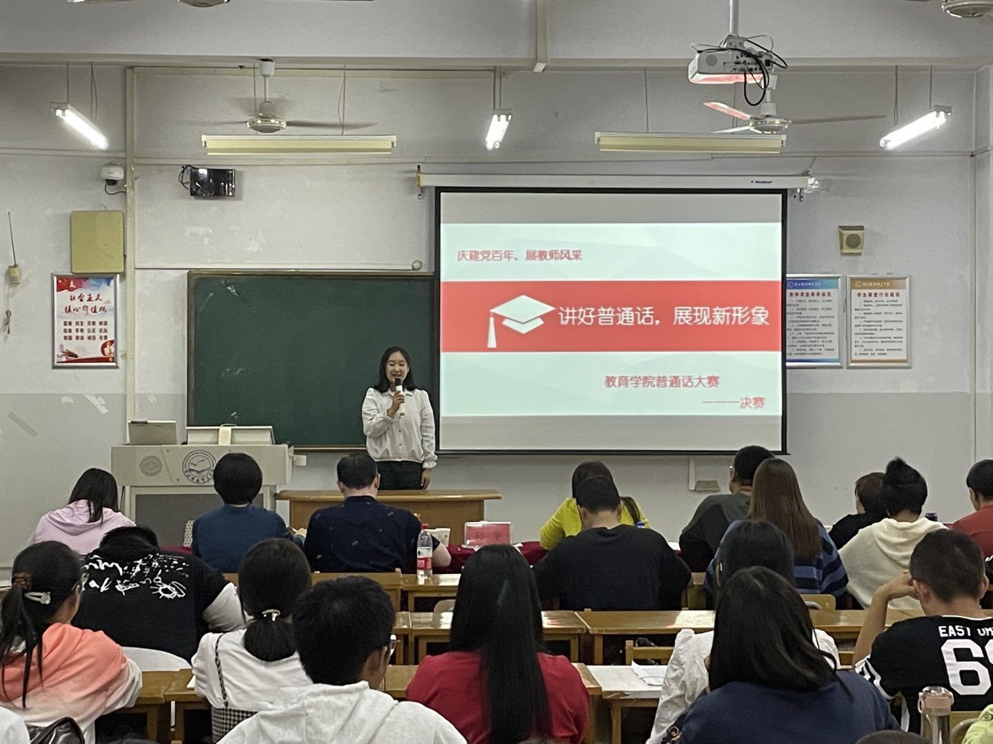 为进一步提高我院学子的专业素养和口语表达能力,培养出新一批优秀的师范生,2021年9月22日19:00,教育学院于综合楼404教室举办“庆建党百年,展教师风采”教育学院“讲好普通话,展现新形象”普通话大赛。
