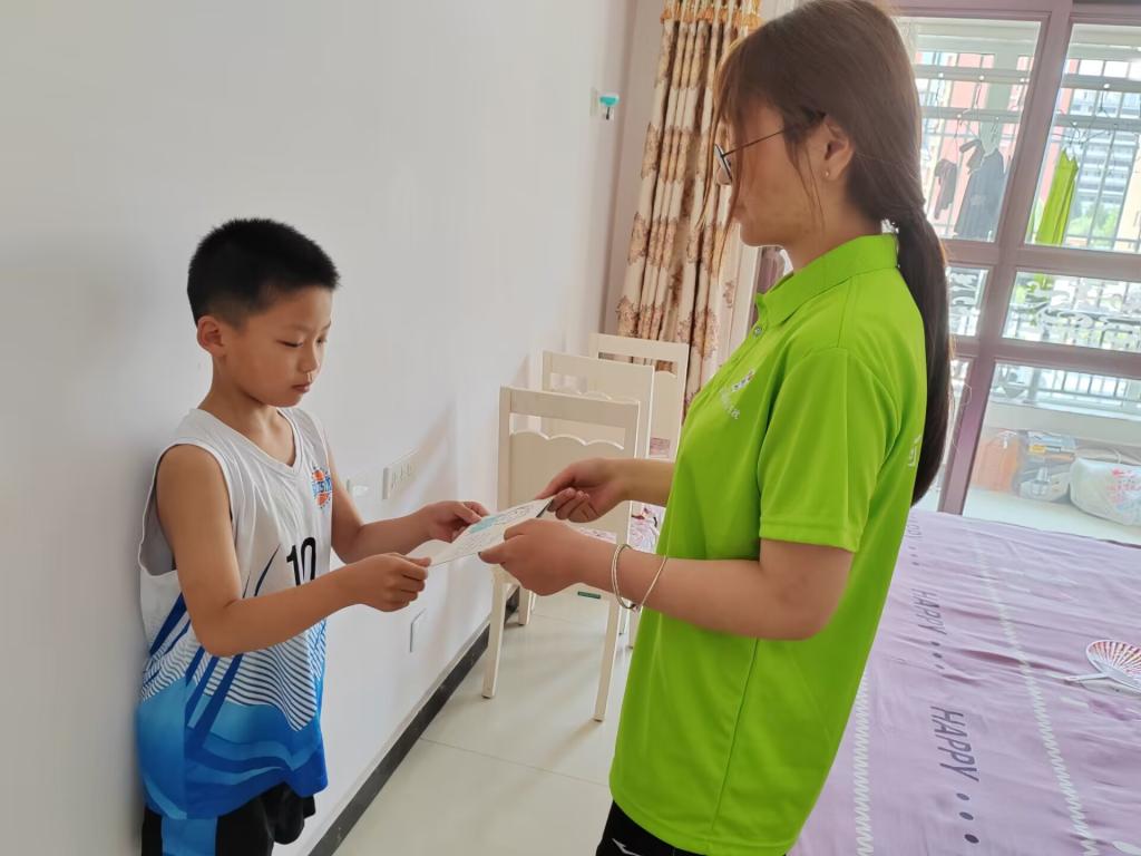 本次实践的主题依旧是发扬乡村振兴,给予教育关爱。这是我们的团队第二次走进西坡村,我们已经对这里的孩子有了初步的了解,再一次见到他们,我们的内心都十分的兴奋及激动。很快我们又见到了这群可爱的孩子们,一样的瘦弱而又充满光亮。本次实践,小组成员精心准备了贺卡,在贺卡上写下了自己的祝福。在简单的聊天后,我们的成员将贺卡赠送给了孩子们,并一起阅读了贺卡上的图片。现场十分和谐安详。