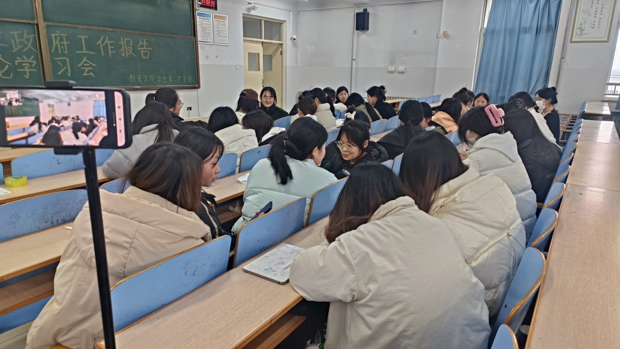 2024年3月7日,教育学院学生第二党支部组织党员、积极分子召开专题学习会,第一时间学习研讨会议精神,深入理解两会精神,夯实理论基础。会上,与会人员一同学习了国务院总理李强同志在大会上的政府工作报告。随后全体人员就所学内容进行讨论发言,发表自己的感悟,坚定自己的信念。