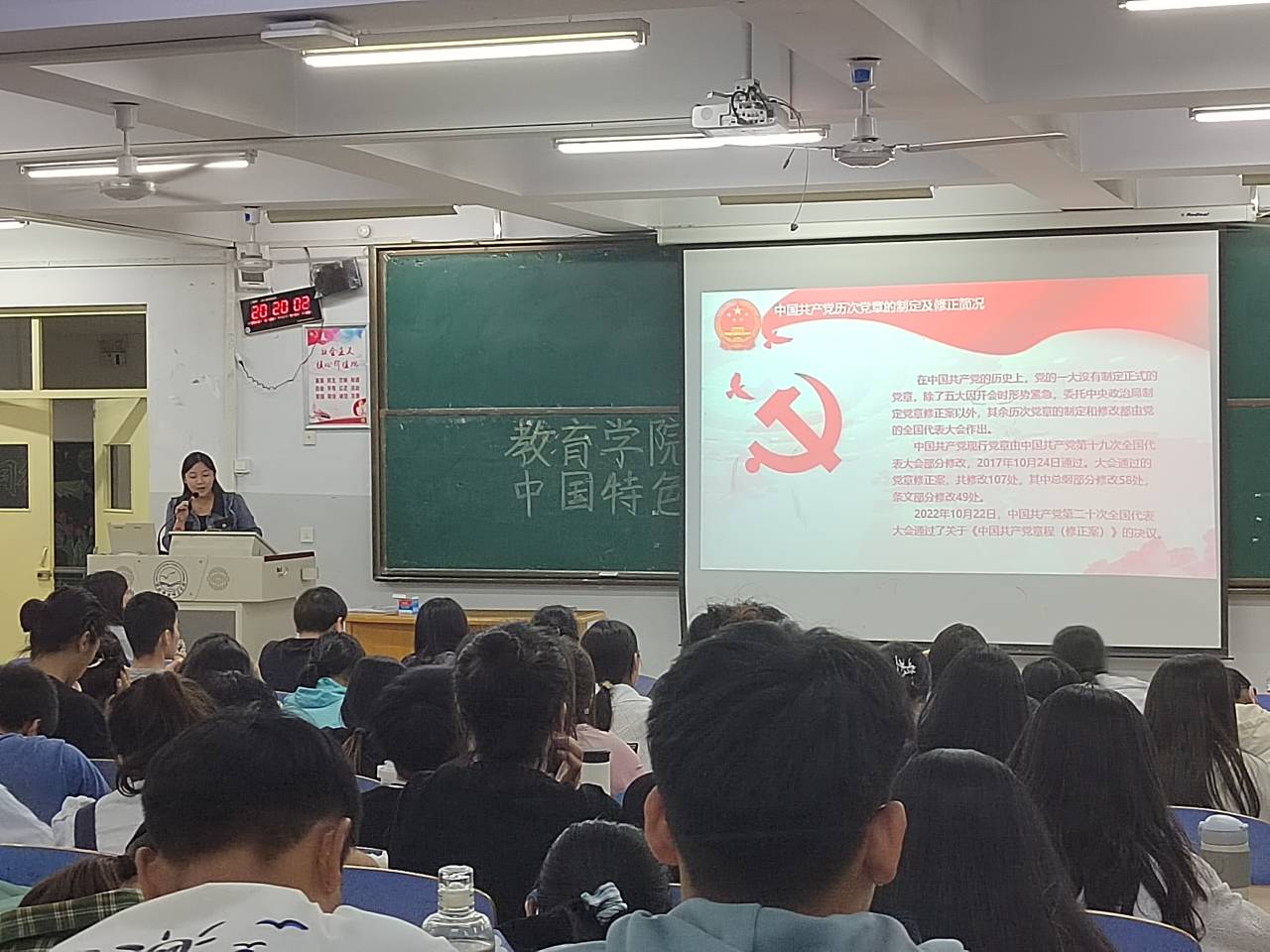 为深入开展学习贯彻习近平新时代中国特色社会主义思想主题教育,全面贯彻党的教育方针,2023年5月29日晚上7:30,教育学院学生第一、第二党支部组织全体党员与入党积极分子于综合楼312教室开展第三次“学习贯彻习近平新时代中国特色社会主义思想主题教育”专题学习活动。