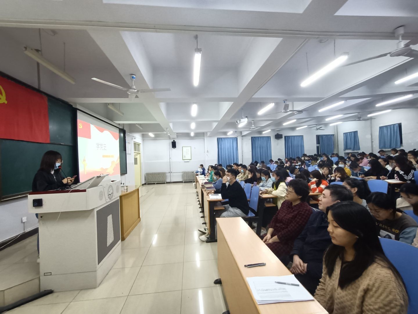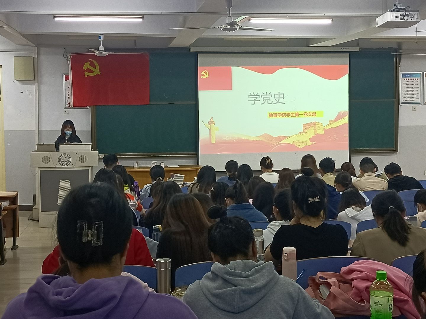 教育学院学生第一党支部于2021年10月8日在综合楼312开展了以“学党史”为主题的党课。 全体学生党员、积极分子参加本次党课并认真学习与记录。