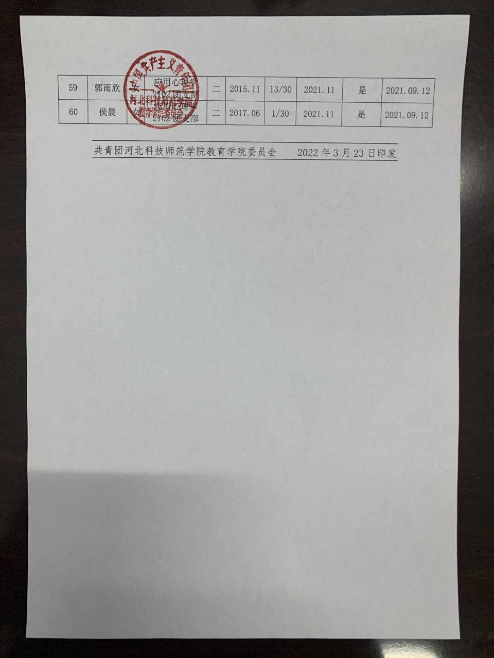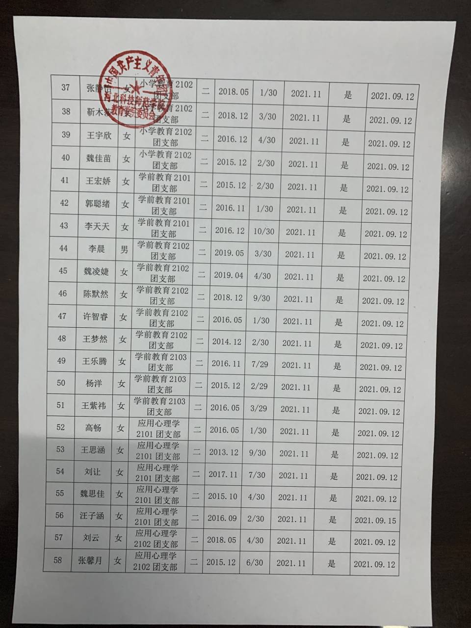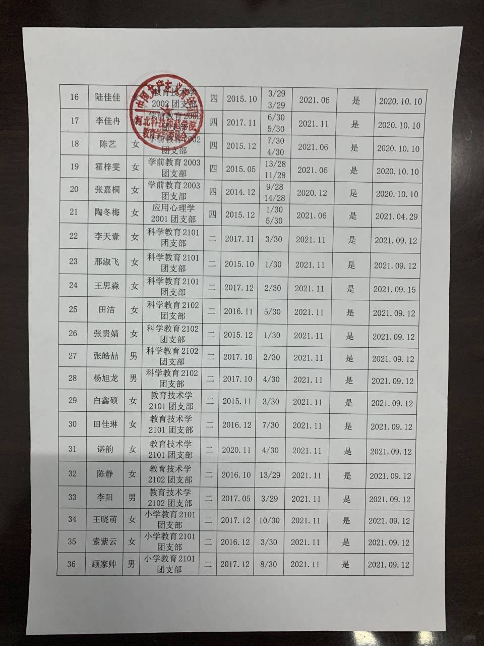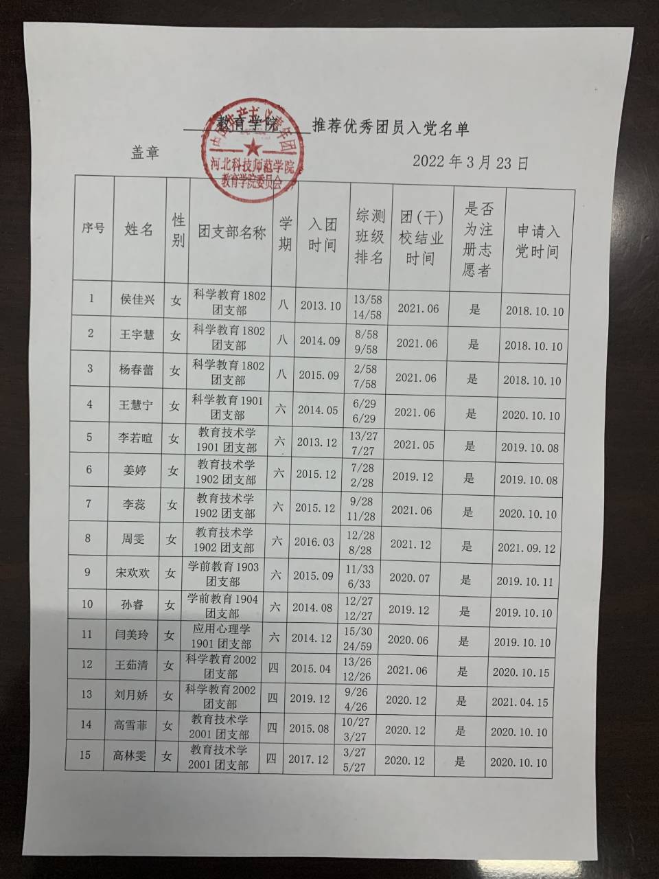 教育学院推荐优秀团员入党名单