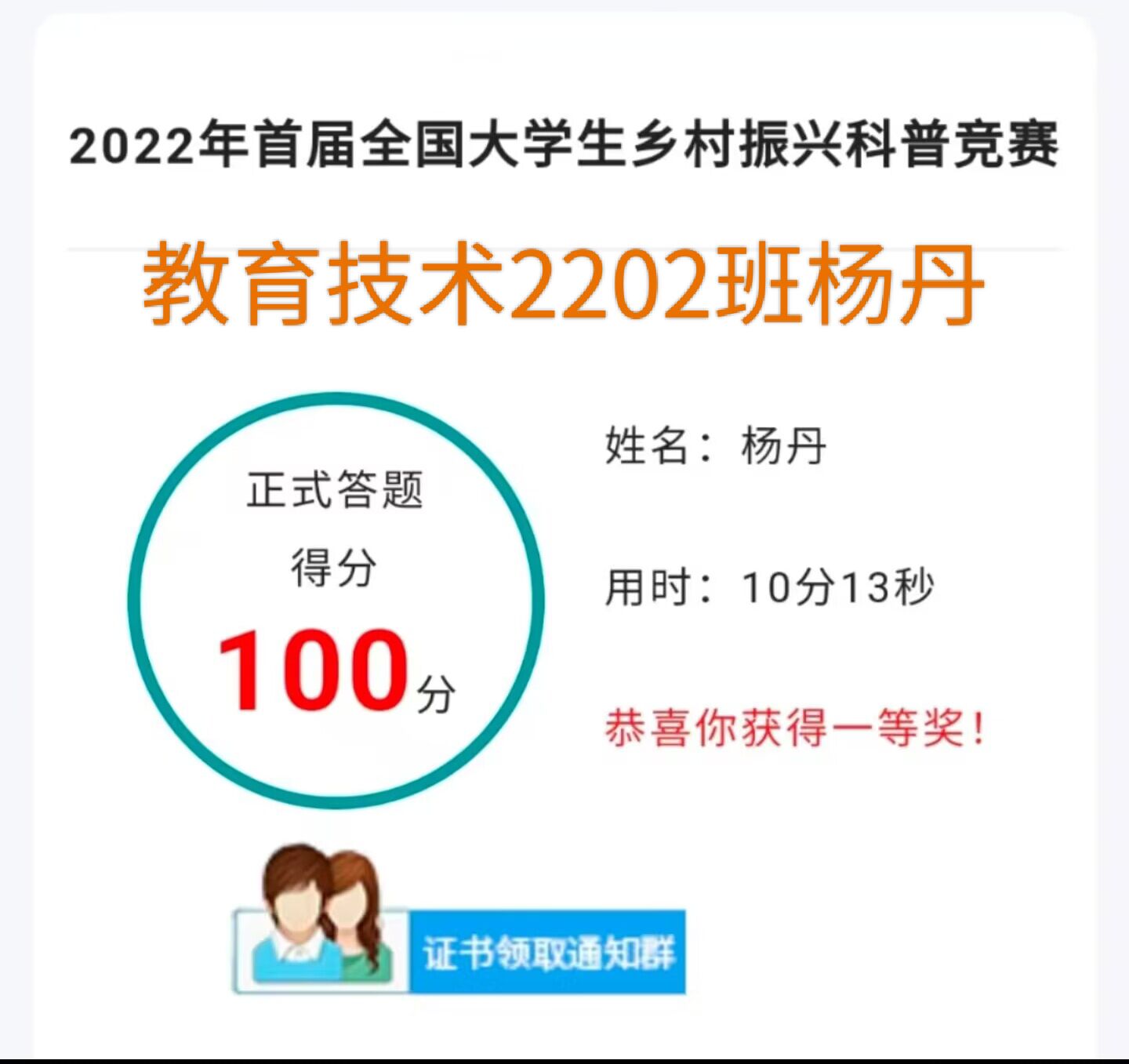 志愿者们通过官方微信公众号进入“全国大学生乡村振兴知识科普大赛”平台,在线学习乡村振兴知识,参与知识竞赛。在答题的过程中,志愿者们了解到大学生积极参与乡村振兴有利于打破农村人才短缺的瓶颈,促进农民观念改变,带动乡村剩余劳动力就业,是稳定社会环境、推动乡村可持续发展、加快新农村建设的有力举措。本次志愿活动的初衷就是为了引导大学生深入学习国家“乡村振兴”战略,提高当代大学生参与“乡村振兴”建设的历史责任感和使命感,挖掘大学生自身的潜力和创造力,让大学生真正成为乡村振兴的推动力量。