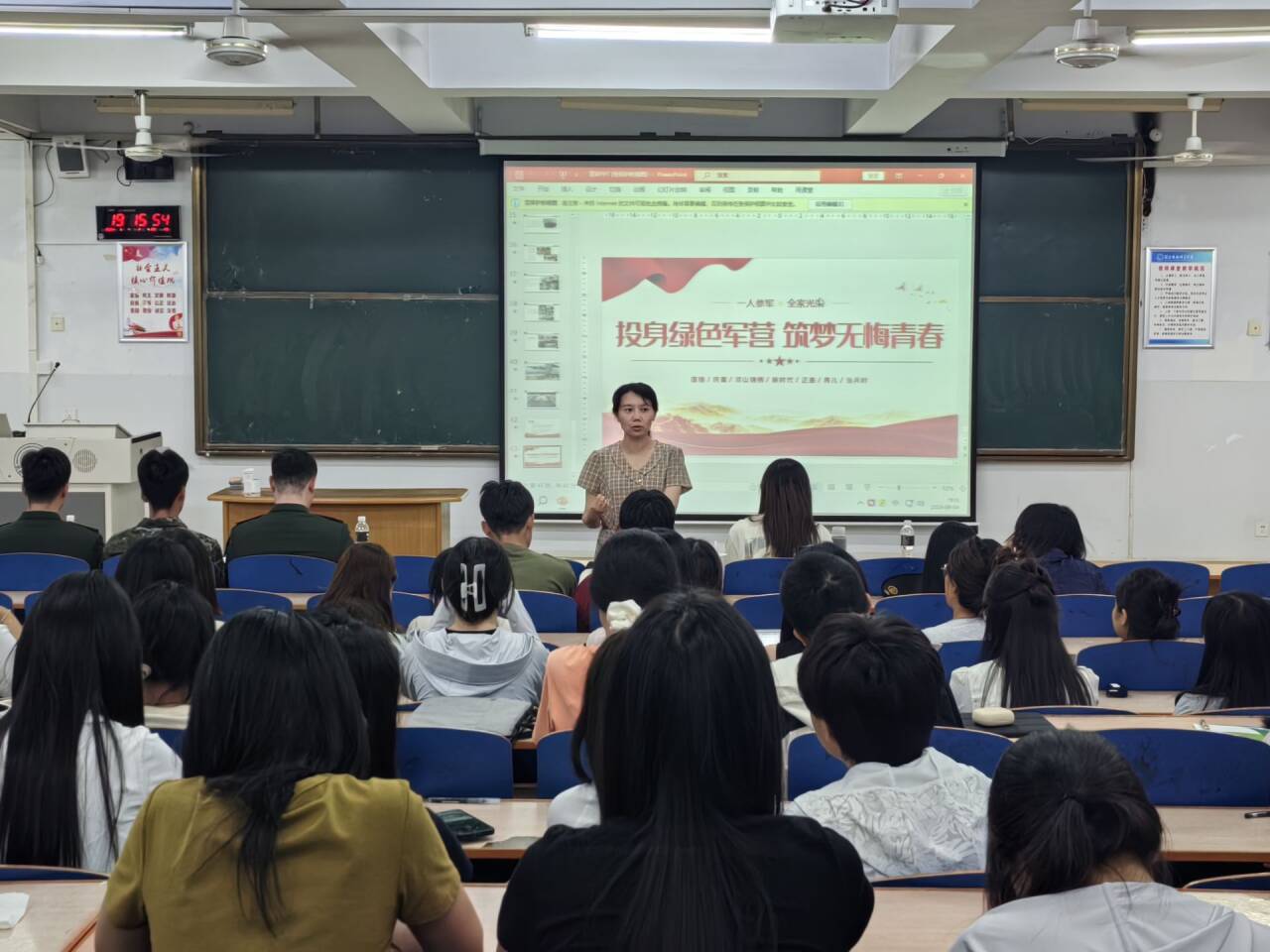 为增强学生国防观念,鼓励大学生参军入伍,切实做好2024年度征兵工作,2024年6月4日,教育学院举办“投身军营,无悔青春”应征入伍主题宣讲,我院退役复学的三位同学作为主讲人,2024届毕业生积极参加此项活动。
