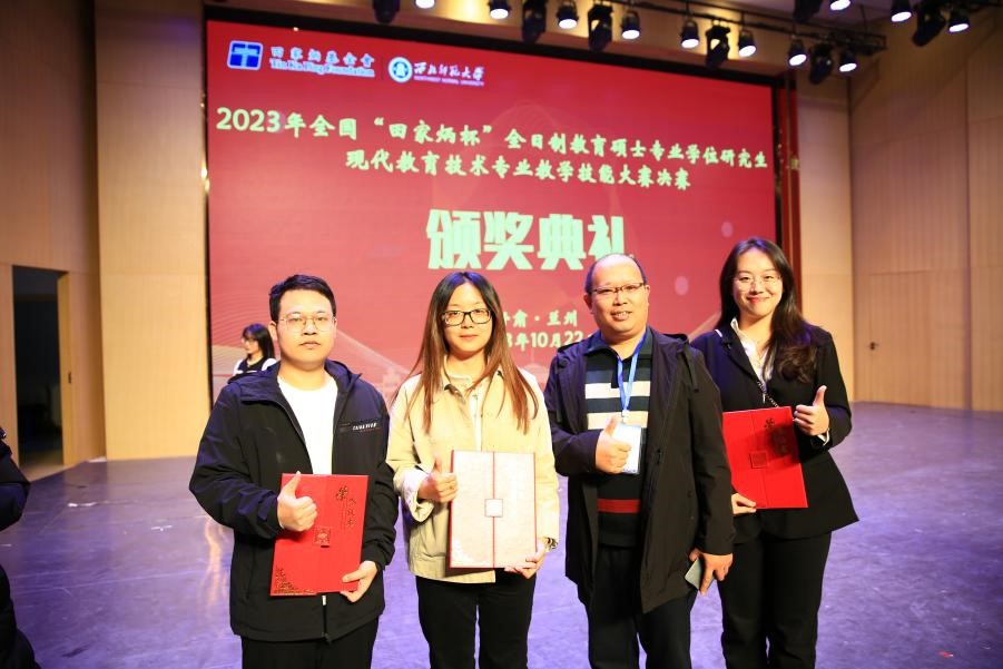 10月21日,2023年全国“田家炳杯”全日制教育硕士专业学位研究生现代教育技术领域教学技能大赛于西北师范大学落下帷幕。从赛前培训、预赛选拔、线上初赛到现场决赛,大赛历时近5个月,激烈角逐,教育学院学子樊文婷、田静秋同学荣获“三等奖”、蔡旭涛同学荣获“优秀教学设计奖”。