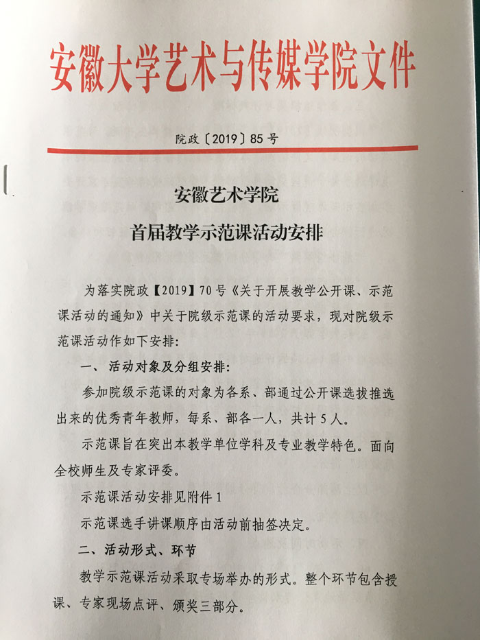 安徽艺术学院首届教学示范课活动安排