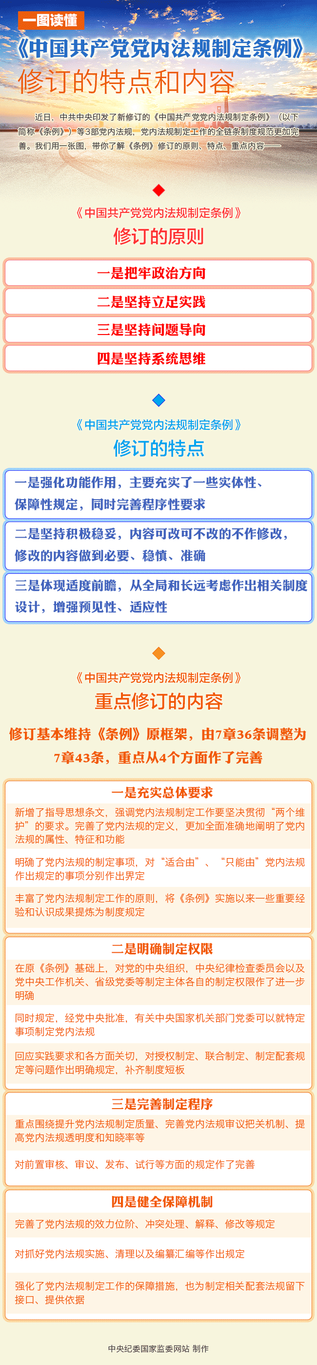 一图读懂|《中国共产党党内法规制定条例》修订的特点和内容