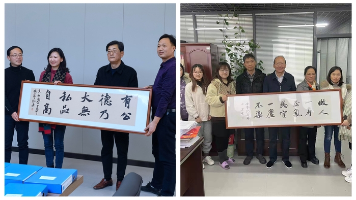 调研结束后,校领导分别向学校各单位赠送了由校纪委组织知名书法家公益创作的廉政书法作品。(撰文:郑军 供图:朱泽军、魏媛媛、李新新等 初核:钱农 编辑:朱新水 初审:张雷雷 审定:王琍琍)