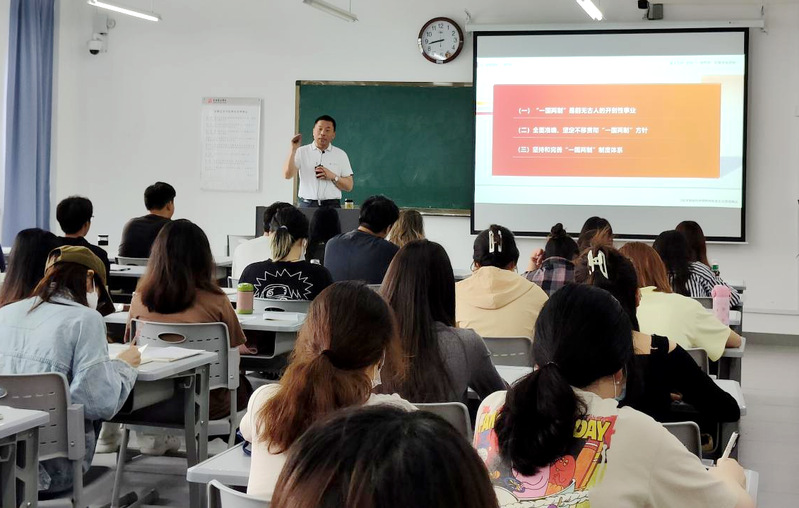 授课中,校领导旁征博引,通过生动的语言、详实的数据、鲜活的案例、相应的视频资料,以及自身的成长经历和阅历见闻,让同学们更加生动地感受到新时代十年取得的历史性成就和发生的历史性变革,达到了以深刻的思想吸引学生,用扎实的理论和生动的事实感染学生的教学效果。