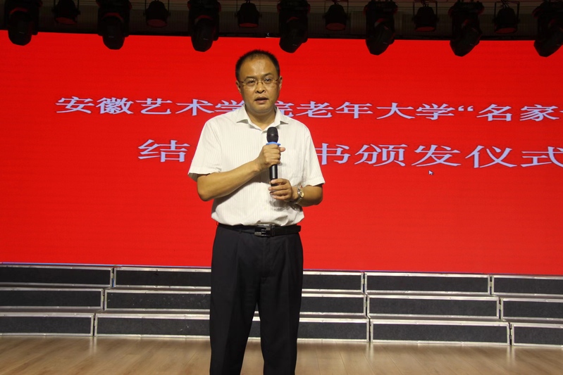 结业证书颁发仪式上,淮北相城老年大学校长乔清华主持仪式,对淮北相城老年大学参加第一期安徽艺术学院老年大学“名家讲坛”活动的学员表示祝贺。安徽艺术学院老年大学姜楠老师代表校领导表达了对淮北相城老年大学的感谢,表示会一如既往的为安徽艺术学院老年大学和淮北相城老年大学的合作共建提供更多优秀的师资与课程。第一期“名家讲坛”活动为600名老年学员颁发了结业证书。