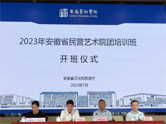 7月19-21日,由安徽省文化和旅游厅主办、安徽艺术学院承办的2023年全省民营艺术院团培训班顺利在我校举办,全省16个地市百佳民营院团代表、文旅局业务负责人100余人参加了本次培训。安徽省文化和旅游厅党组成员、副厅长丁光清,艺术处处长田冰凌,科技教务处处长马峰,安徽艺术学院党委副书记、院长樊嘉禄出席开班仪式。培训班由田冰凌主持。
