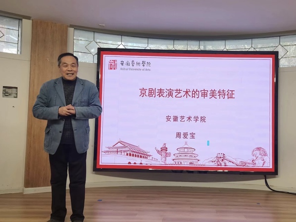 同日,在淮北教学点开展了两校合作的第9期“名家讲坛”活动,安徽艺术学院周爱宝教授以《京剧表演艺术的审美特征》为主题,向老年学员们呈现了一场生动的讲座。