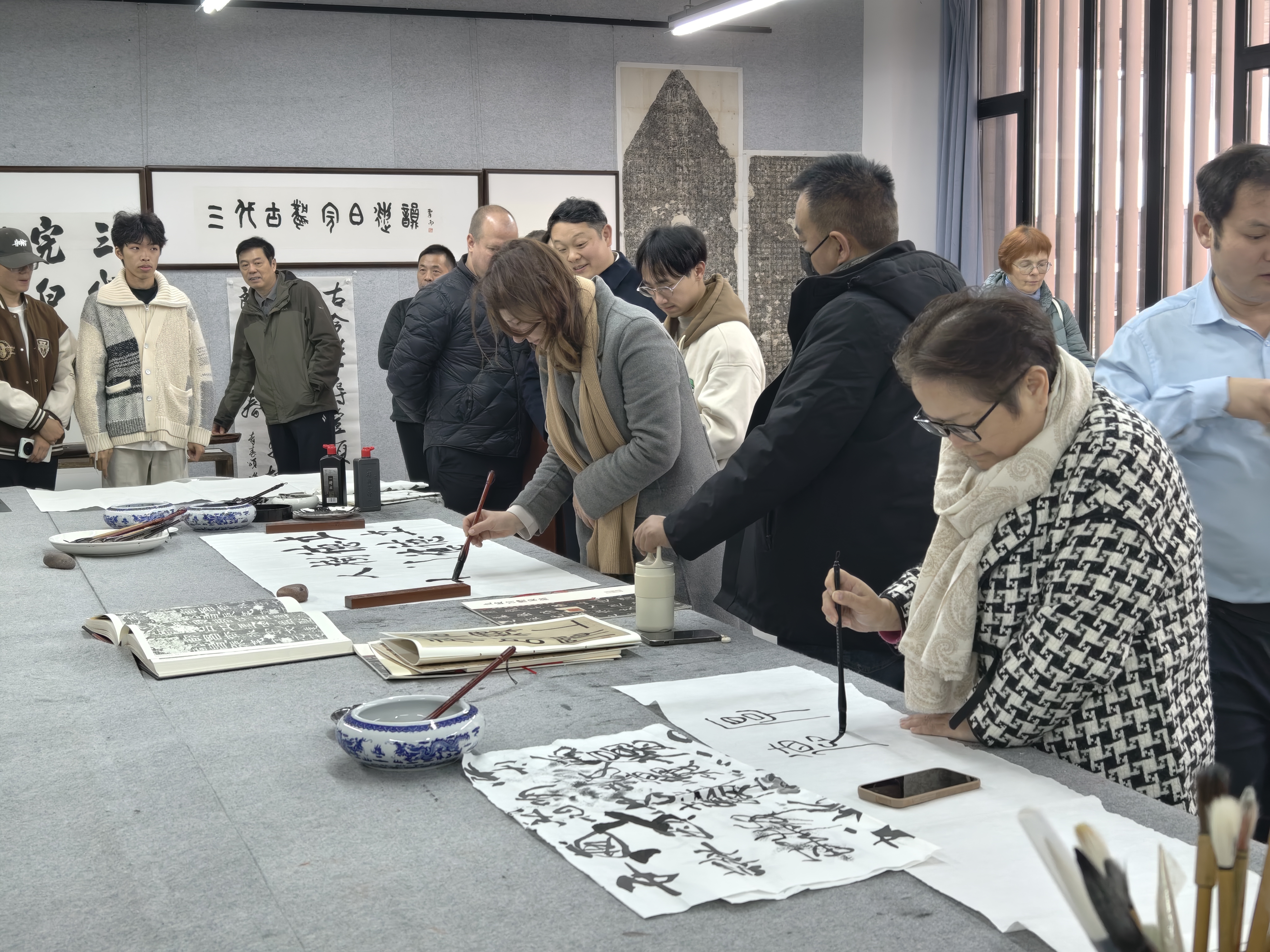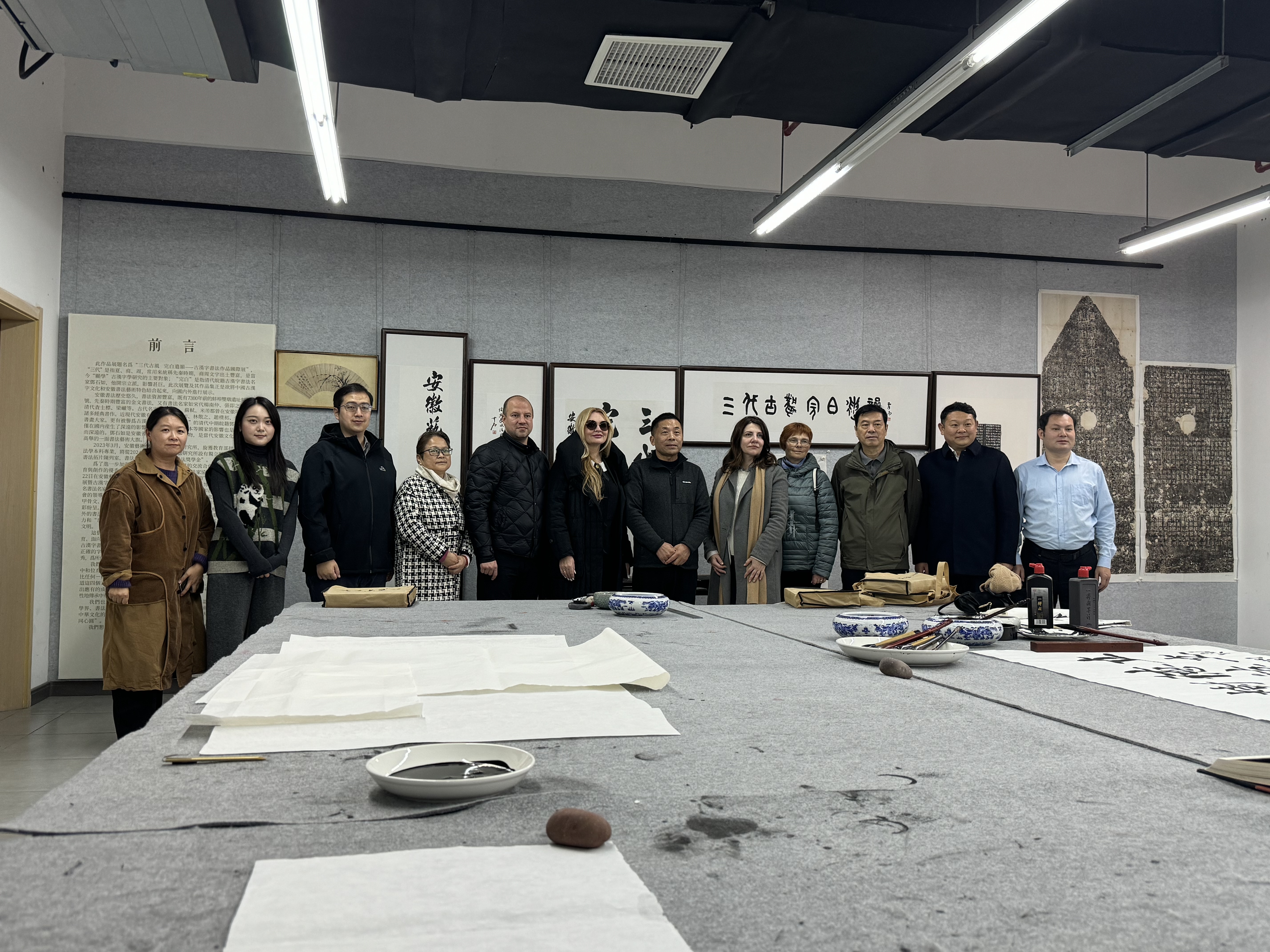 11月20日,全民终身学习主题笔友会在美术楼书法研究所举行。我校原校党委副书记、校长樊嘉禄,原安徽大学艺术与传媒学院副院长赵枞安,原财务处基金财务室主任王淑红,白俄罗斯国立艺术学院副校长阿纳斯塔西娅·科洛索夫斯卡娅一行和学校书法爱好者们参加活动。