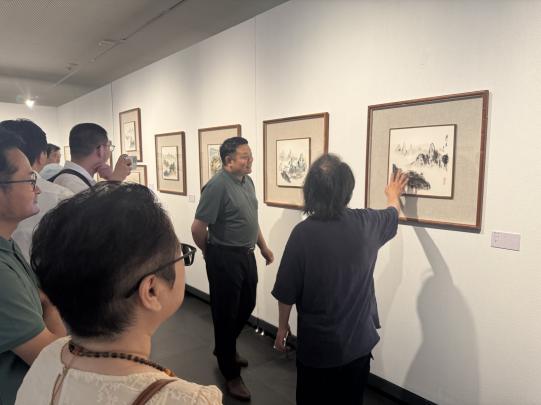 活动特邀学校美术教授罗耀东教授现场授课,他从中国山水画的意境、书法欣赏要领、艺术家的修养三个方面进行了详细讲解。老同志们驻足欣赏郭因先生创作的222幅书画作品,从行云流水的书法墨宝到意境深远的山水小品,每一幅作品都引发热烈讨论。退休教师纷纷感慨道:“郭老以百岁高龄仍保持旺盛的创作力,这种对艺术的执着追求让我们深受触动,此次参观既是一场视觉盛宴,更是一堂生动的人生课。”