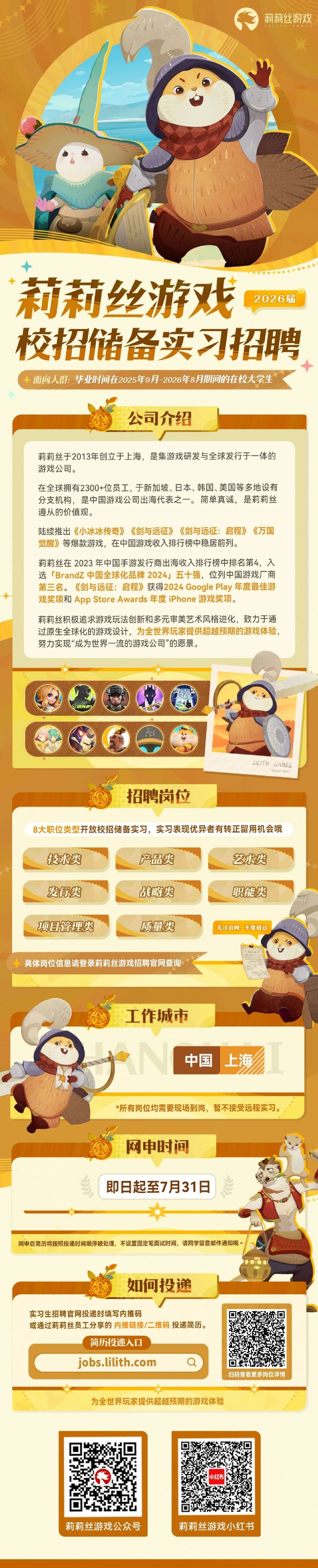 莉莉丝2026校招储备实习招聘