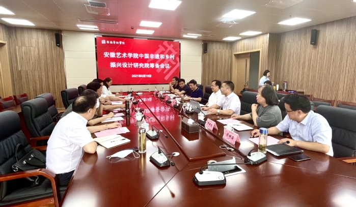 为推动中国非遗文化传承创新和人才培养,以艺术创作与科教事业助力乡村振兴战略,我校作为发起者,与中国非遗研究保护中心、复旦大学国家文化创新研究中心和其它相关行业专门机构共同组建“安徽艺术学院中国非遗和乡村振兴设计研究院”(以下简称“研究院”)。6月18日下午,研究院筹备领导组第一次会议在综合楼823会议室召开。