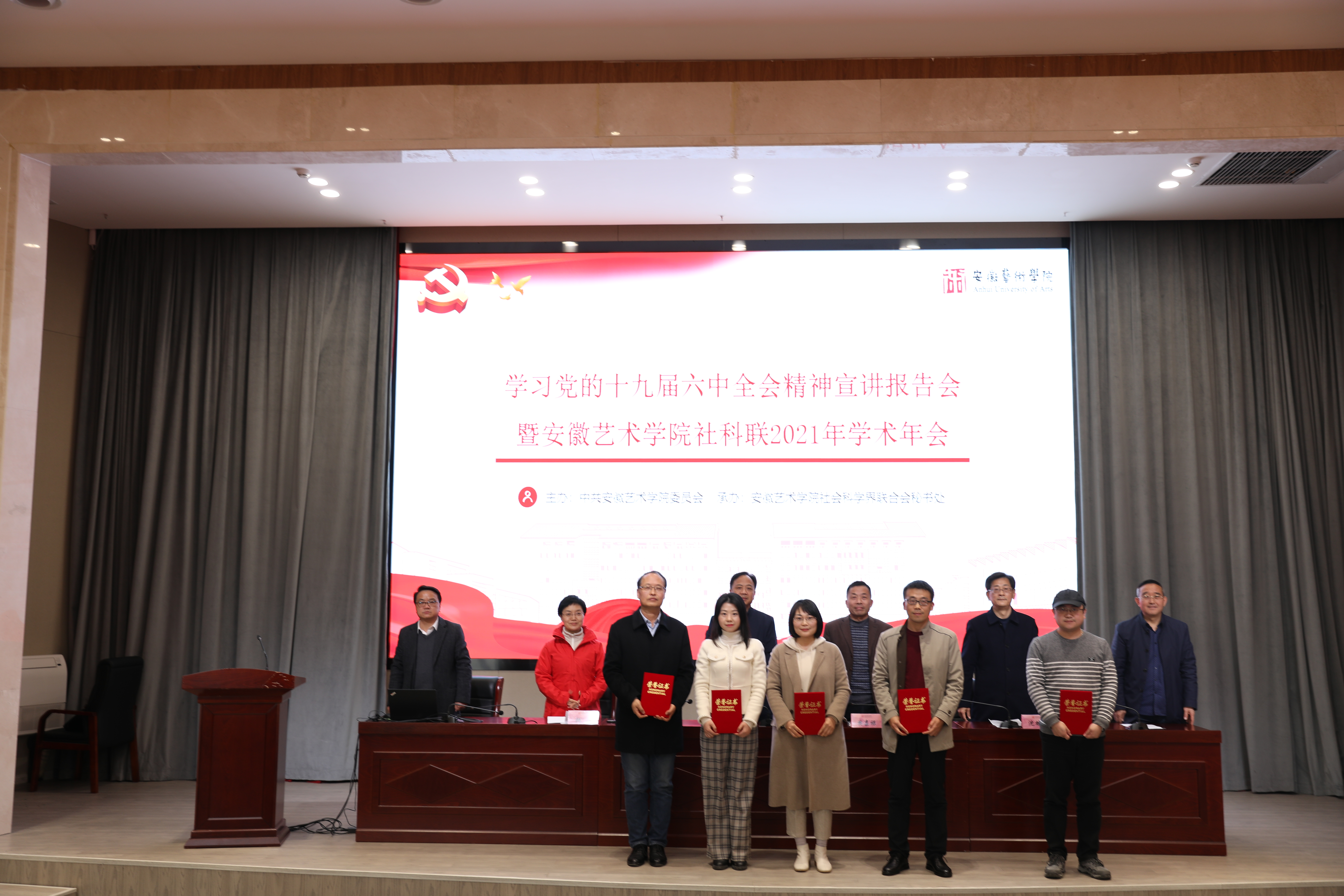12月3日下午,安徽艺术学院社科联2021年学术年会在综合楼五楼报告厅举行。校党委班子成员出席年会,并为在校“学习百年党史,传承红色血脉”主题学术征文活动中获奖的教师颁奖。