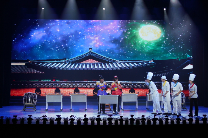 “这是一个在厨房发生的幽默故事,通过对厨具的敲打来点燃观众们的激情……”正当观众们直视舞台等待由韩方带来的《乱打神厨》节目时,没想到乱打神厨演出团在入场口敲击着锅碗瓢盆惊喜亮相,一路以律动牵引着观众们的视线来到舞台。乱打神厨以四物游戏的旋律为素材创作,将韩国的四物游戏与西方架子鼓的节奏巧妙结合,并大量使用日常的厨房用具作为乐器,穿插大量幽默的故事情节。其间,我校师生还应邀上台助演,一时间更添欢声笑语。