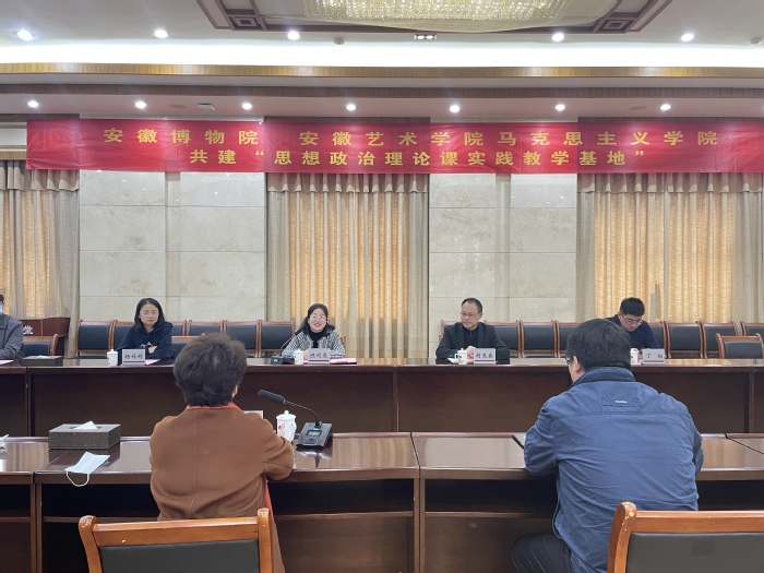 陈昀岚、徐大珍先后发表热情洋溢的讲话,代表双方单位在《安徽艺术学院马克思主义学院与安徽博物院共建“思想政治理论课实践教育基地”协议书》上签字,并共同为安徽艺术学院学院马克思主义学院“思想政治理论课实践教育基地”揭牌。