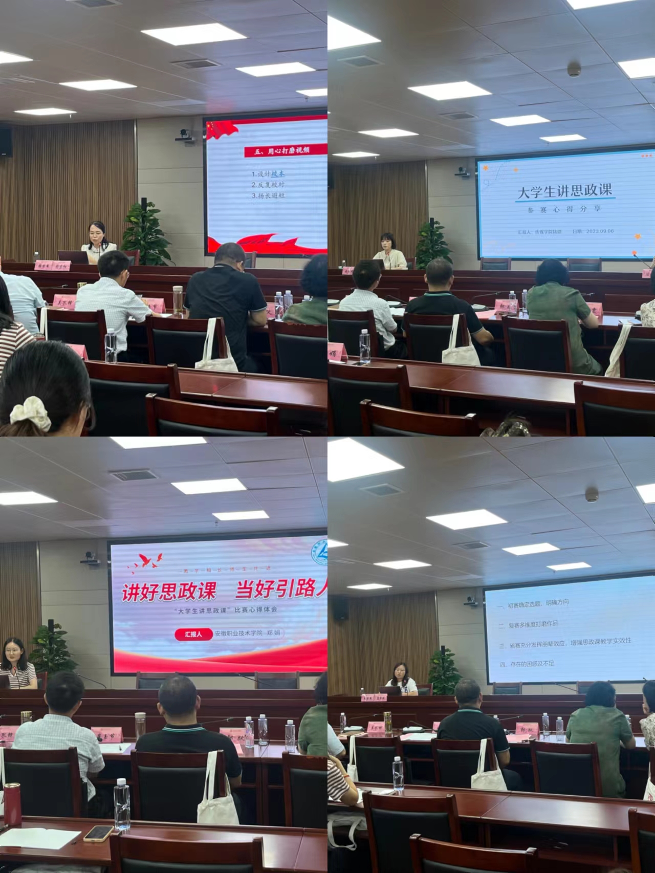 会议邀请安徽师范大学马克思主义学院龚伟副教授作《大学生讲思政课的核心要义》的专题报告,安徽国际商务职业学院马克思主义学院党支部书记、副院长龚红庆教授介绍了该校组织参加全省首届大学生讲思政课的做法。在全省高校首届大学生讲思政课活动中获奖的4所院校的指导老师分享了指导参赛经验。参会老师就有关问题进行了交流互动。