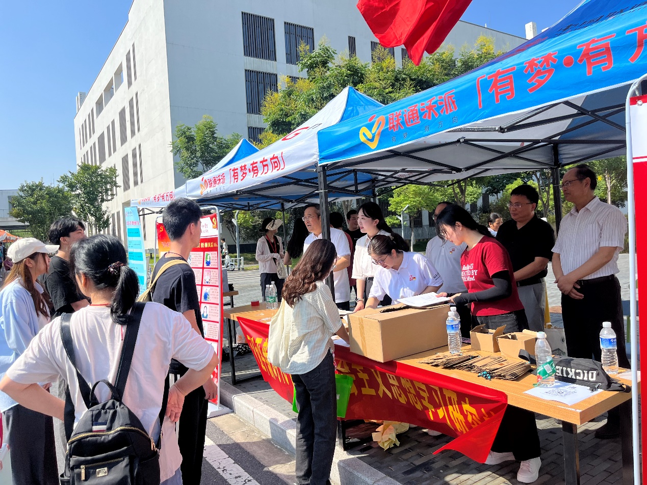 9月7日2023级新生报到当日,马克思主义学院直属党支部走进迎接新生现场,围绕“巩固深化主题教育成效,为新生上好第一堂思政课”主题与习近平新时代中国特色社会主义思想学习研究社联合开展迎新志愿服务。