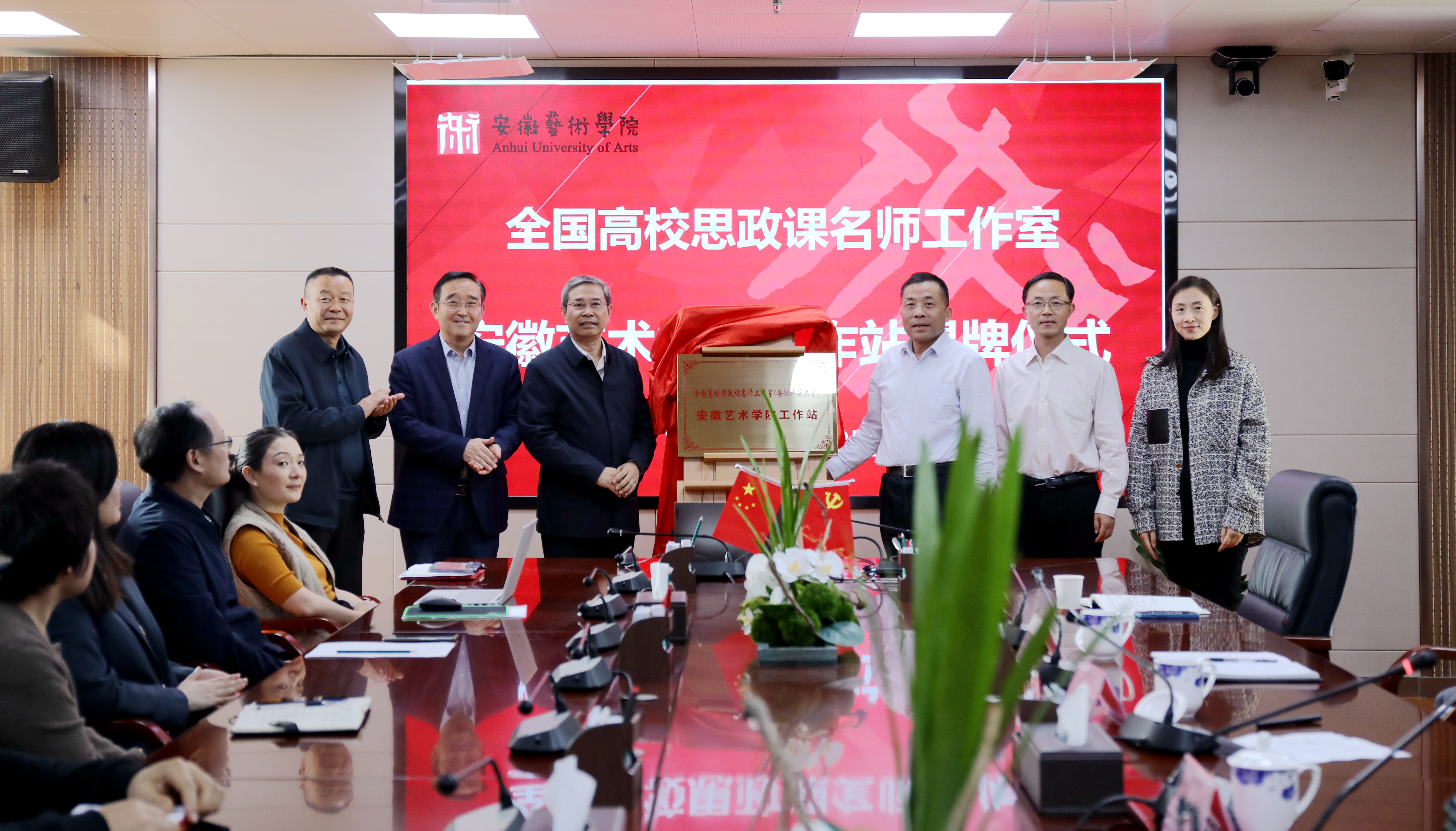 11月8日,“全国高校思政课名师工作室(安徽师范大学)安徽艺术学院工作站”揭牌仪式暨思想政治教育教学工作座谈会在我校马克思主义学院举行。党委副书记、校长樊嘉禄和党的二十大代表、全国最美思政课教师、安徽师范大学马克思主义学院路丙辉教授为工作站揭牌。马克思主义学院院长吴孔铎主持仪式。
