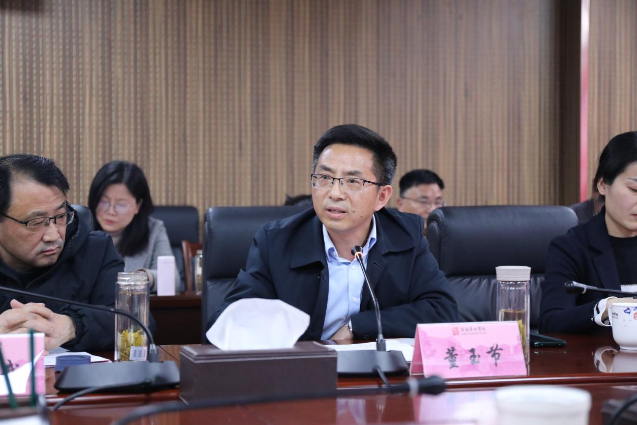 安徽省高校思想政治理论课教学指导委员会办公室主任、新站区高校思想政治理论课教学联盟理事长、安徽中医药大学马克思主义学院院长董玉节代表联盟祝贺安徽艺术学院学习贯彻习近平总书记“3·18”重要讲话发表五周年系列活动取得圆满成功。他指出,安徽艺术学院领导班子对马院发展的大力支持令人感动,体现了党政同心、齐抓共管,共同推动大思政课建设的决心。