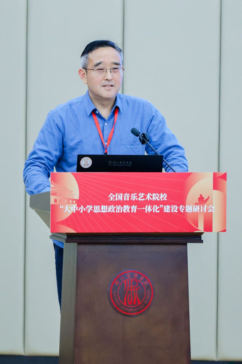为深入贯彻落实党的二十届三中全会精神,扎实推进“大中小学思想政治教育一体化建设”,12月6日至8日,全国音乐艺术院校“大中小学思想政治教育一体化”建设专题研讨会在浙江音乐学院举行。全国艺术院校马克思主义学院负责人、教师代表,西湖区中小学教师代表齐聚浙音,分享各院校特色做法与实践经验,共同探索大中小学思想政治教育一体化建设的新理念、新路径与新方法。安徽艺术学院马克思主义学院院长吴孔铎和教师代表应邀参加会议。