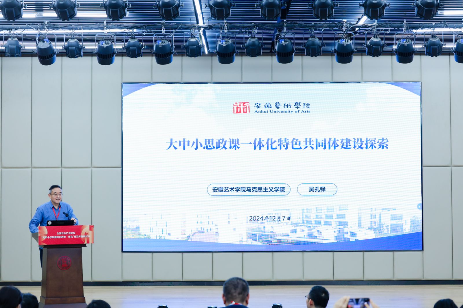 马克思主义学院院长吴孔铎以《大中小思政课一体化特色共同体建设探索》为题进行分享。他表示,安徽艺术学院在探索具有艺术类高校鲜明特质的“大中小学思政课一体化共同体”创新范式上将持续着力,推动在大中小学讲好“思政+艺术”特色的思政课。