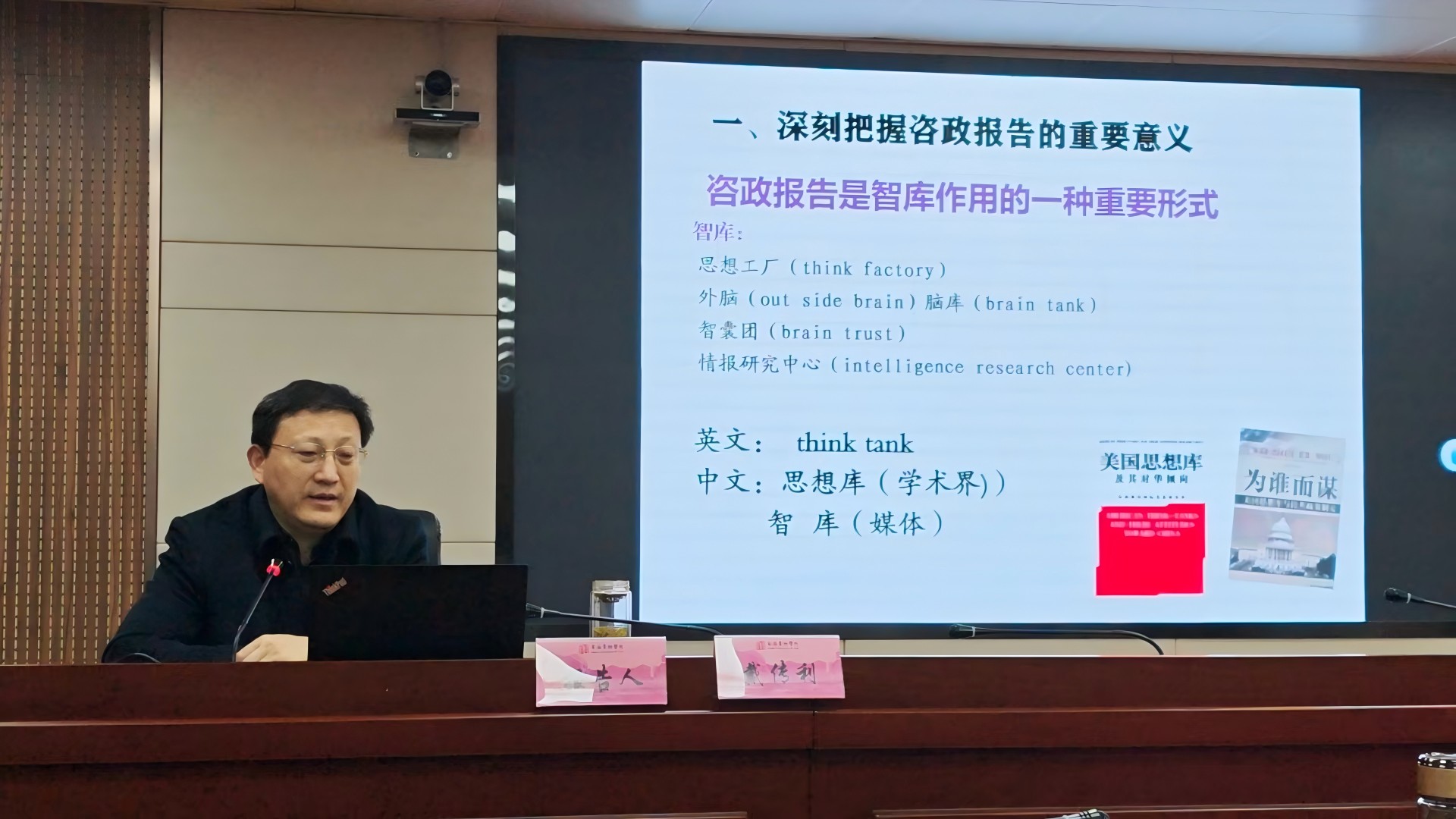 在讲座中,戴传利教授结合自身多年咨政研究经验,围绕咨政报告的重要意义、撰写方法与文本写作等,从选题方向、框架设计、数据支撑、政策建议撰写技巧等方面展开深入讲解,并通过案例分析分享了如何提升咨政报告的针对性与可操作性。他强调,咨政报告的核心在于服务决策需求,需立足实际、聚焦问题、科学论证,做到“言之有据、言之有理、言之有用”。