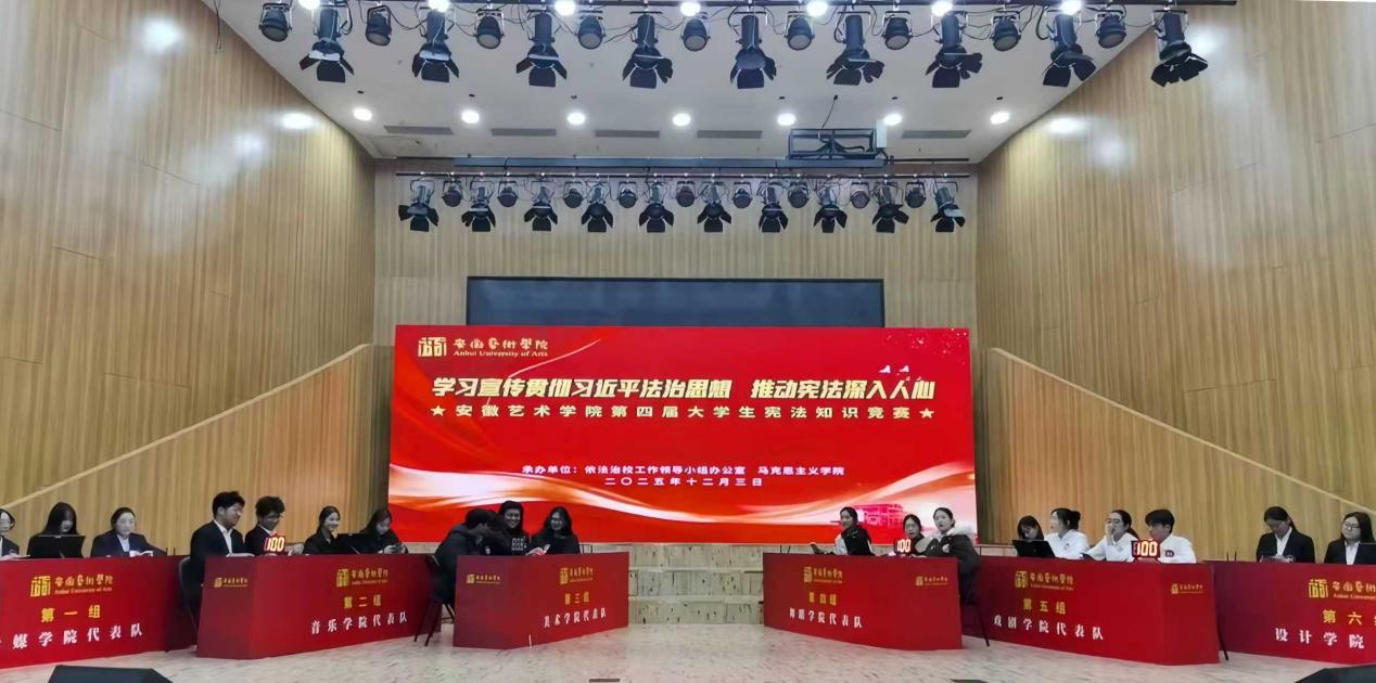 为深入学习宣传贯彻习近平法治思想,推动宪法深入人心,12月3日下午,第十届安徽省学生“学宪法 讲宪法”获奖表彰暨安徽艺术学院第四届大学生宪法知识竞赛活动在音乐南楼音乐厅顺利举行。校党委副书记陈文兵出席活动,各二级学院有关负责同志参加。
