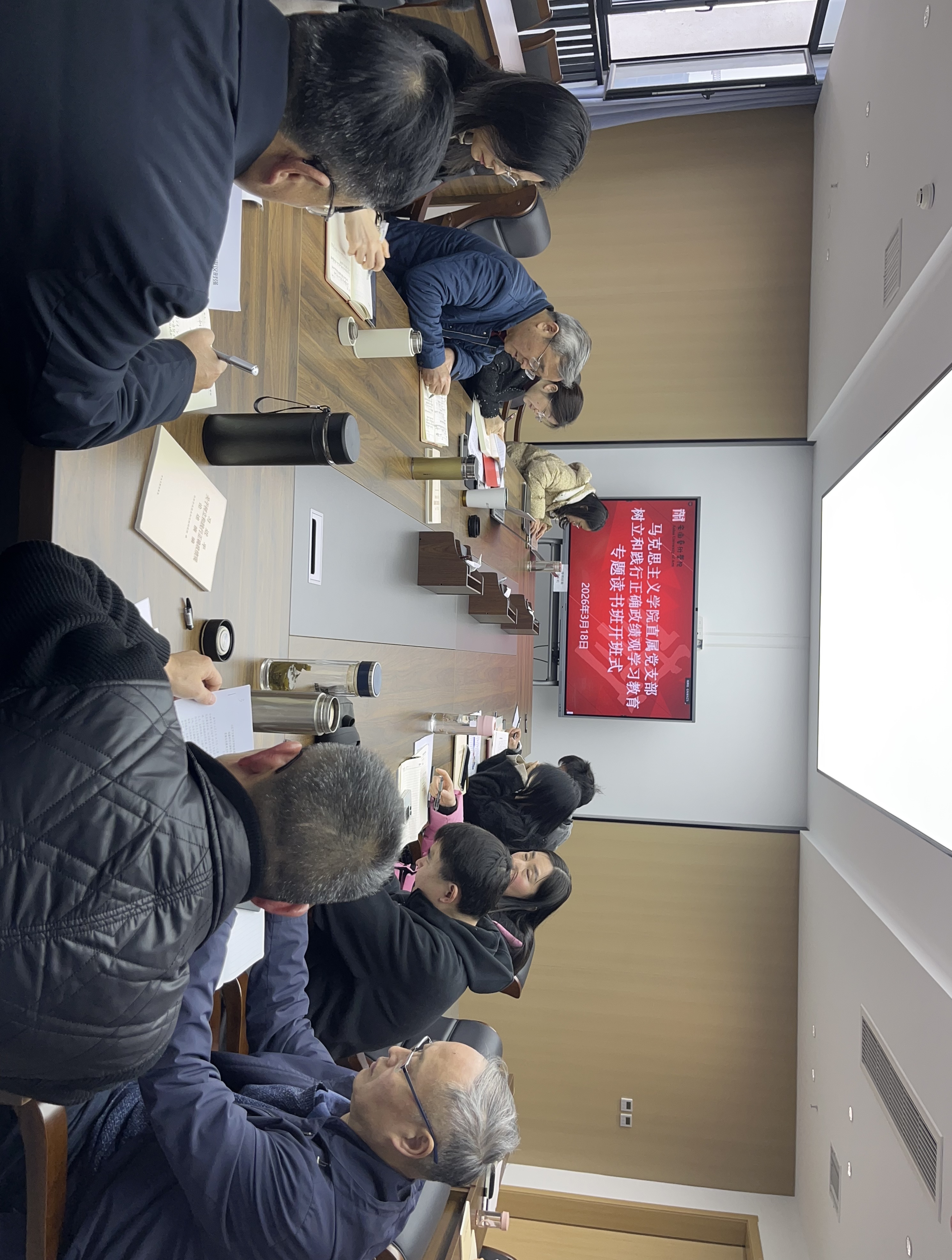 为深入学习贯彻习近平总书记关于树立和践行正确政绩观的重要论述,持续强化党员教师思想政治建设与作风建设,3月18日中午,马克思主义学院直属党支部在崇德楼604会议室举行树立和践行正确政绩观学习教育读书班开班式,同步开展支部书记讲专题党课活动。支部书记陈昀岚主持会议,支部全体党员参加学习。