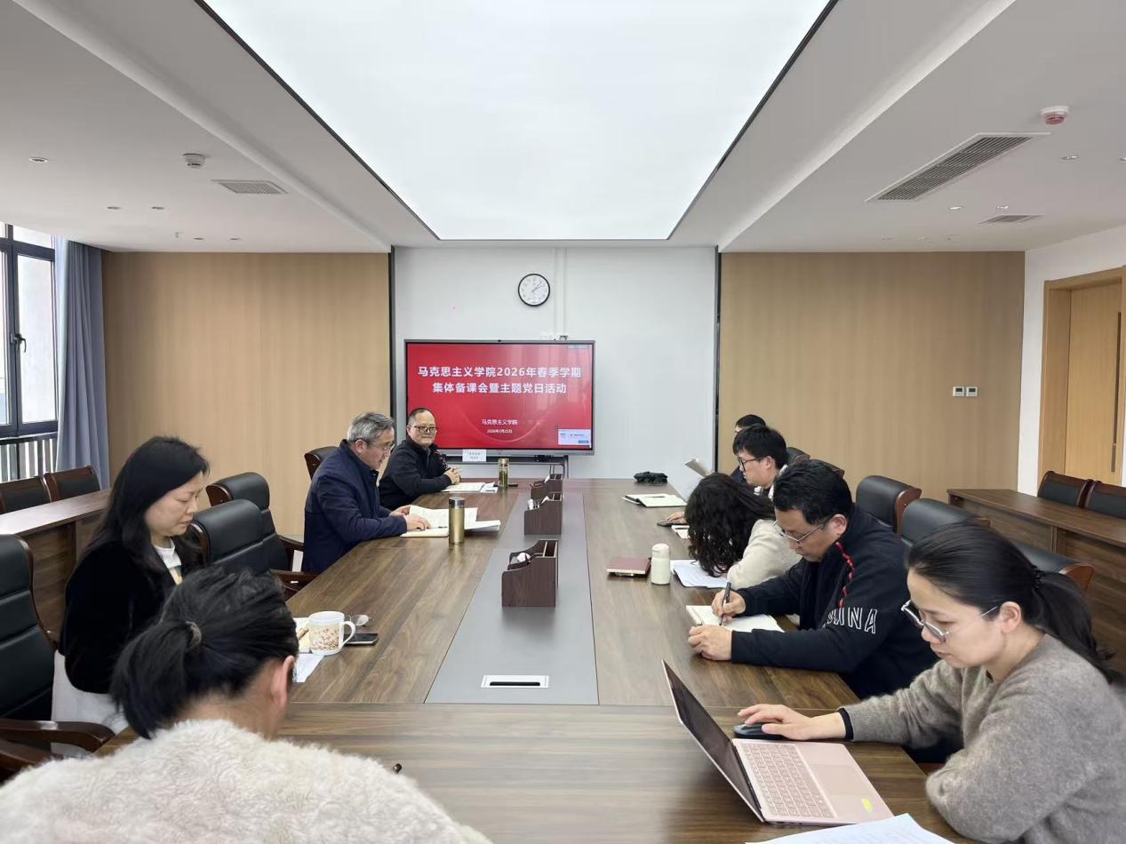 为深入开展树立和践行正确政绩观学习教育,推动党建和业务相融合,3月25日下午,马克思主义学院在崇德楼604会议室召开主题为“深学细悟正确政绩观 推动思政课教学提质增效”的2026年春季学期集体备课会暨主题党日活动。学院全体党员教师参会。